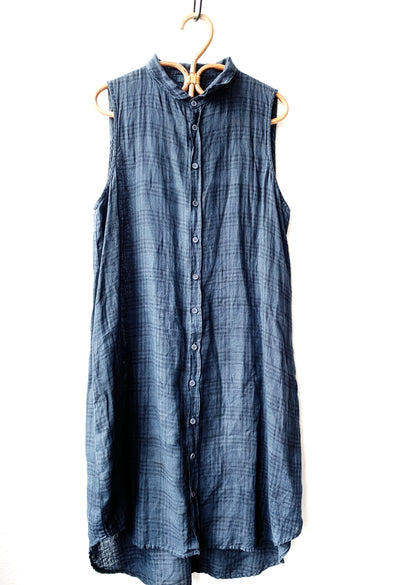 Fantastic CP Shades Linen button up dress. Navy plaid, feather weight, sheet! Definitely need a slip or layer it up over tights and a sweater. Super cute and easy to wear! Loose or belted