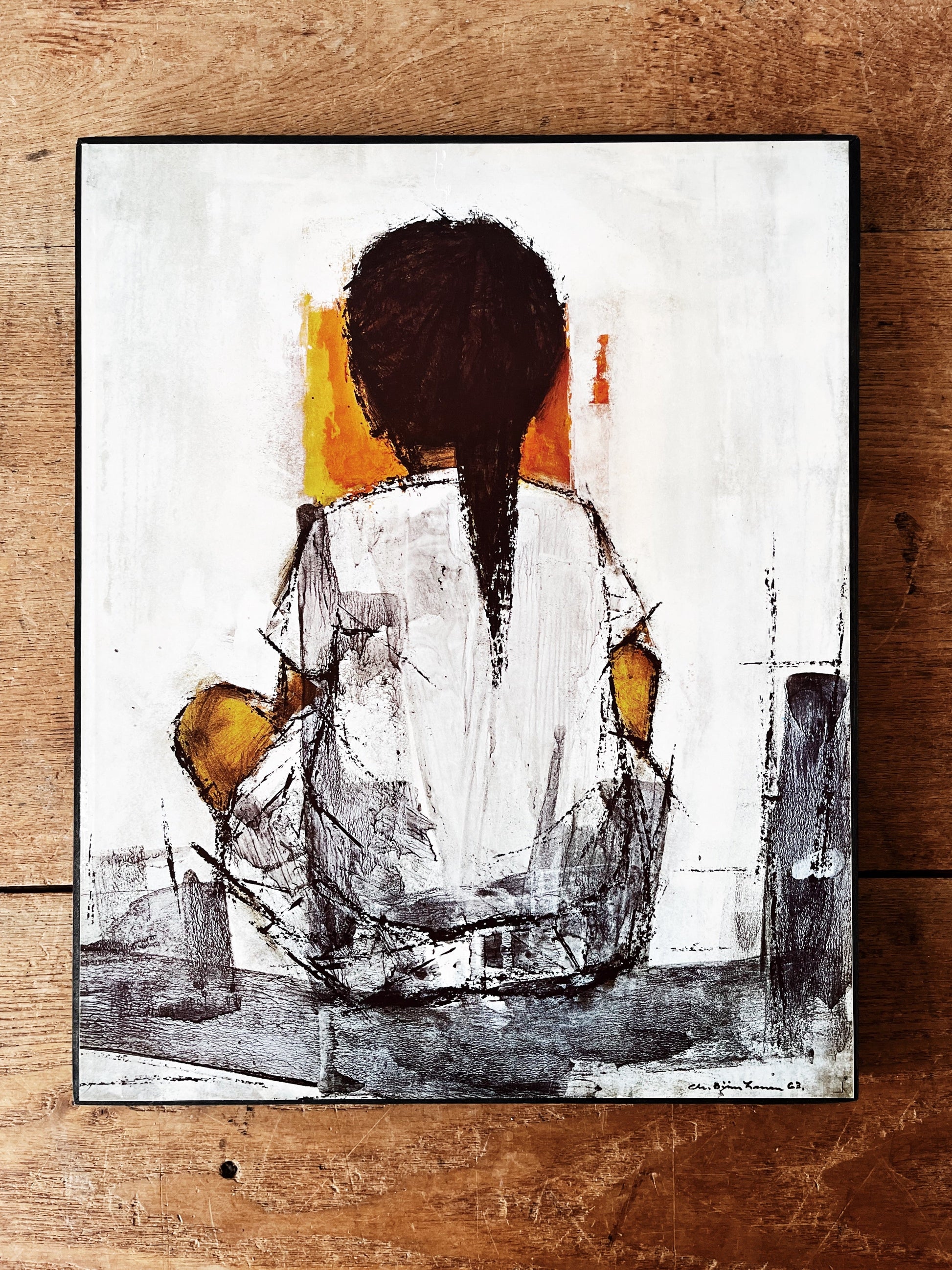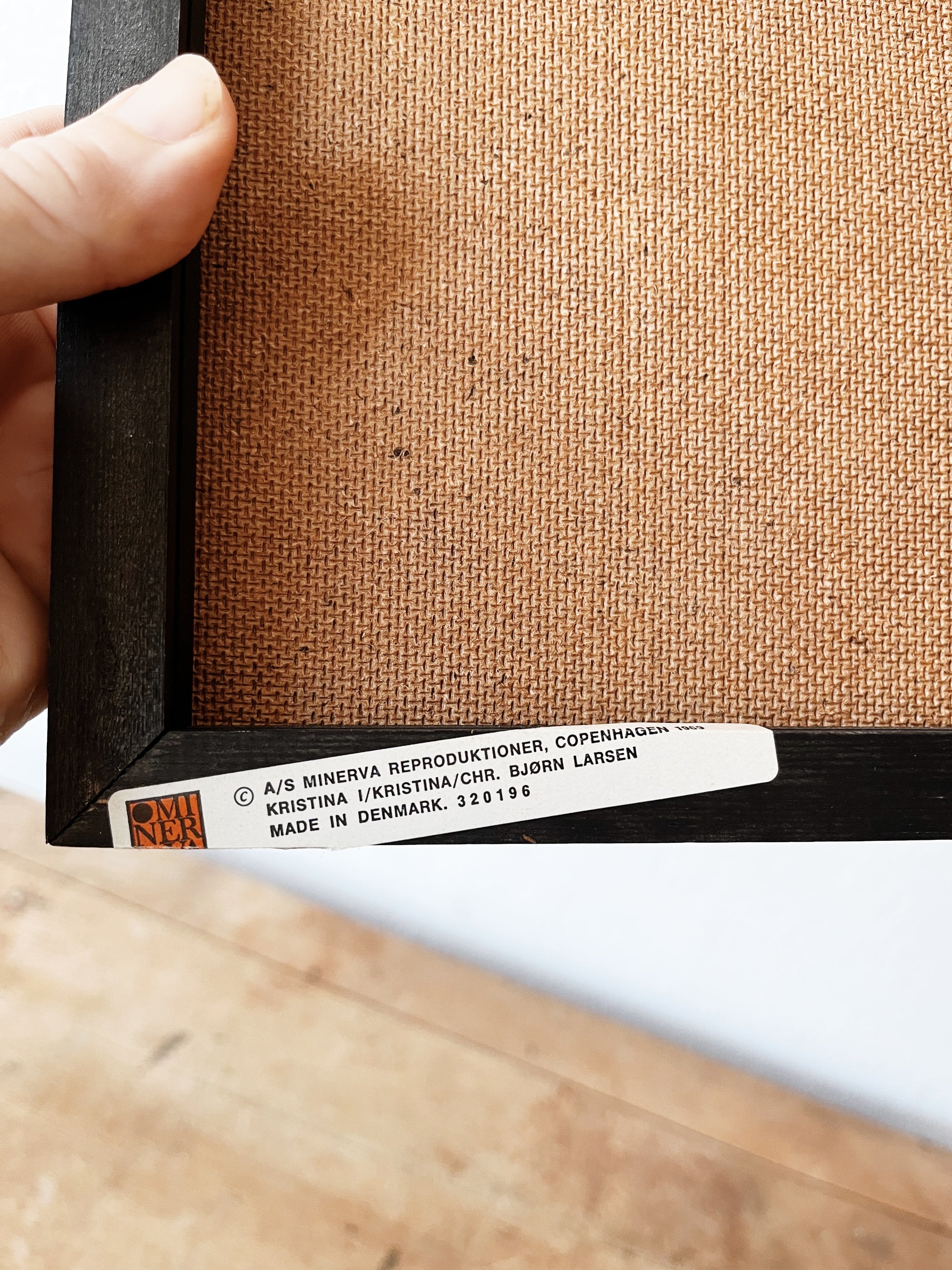 Vintage Bjørn Larsen pressed litho titled ‘Kristina’. Hard edge frame. From Denmark. Marked on reverse 1963.