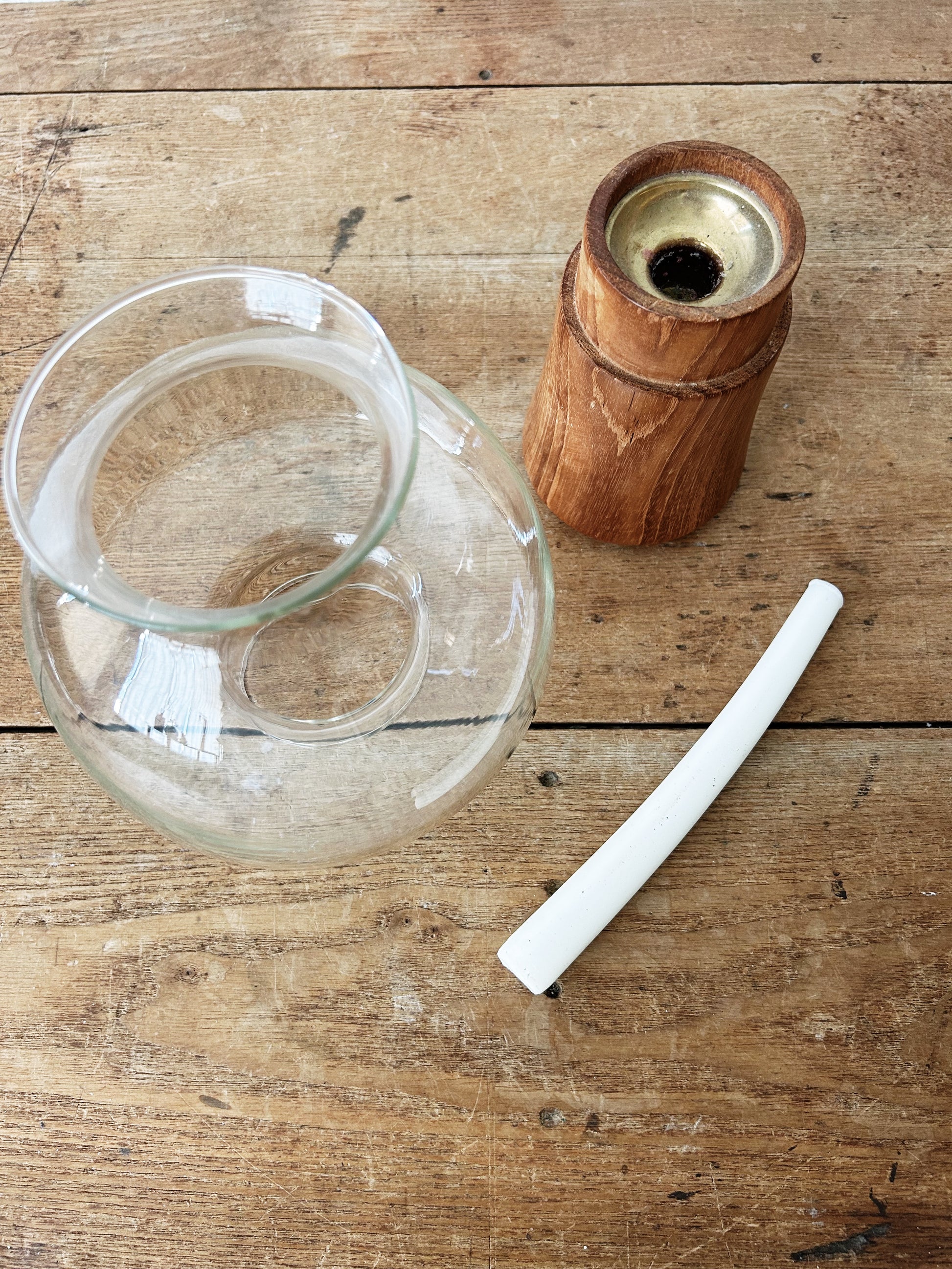 Lovely vintage Dansk candle wood with brass candle holder with shade. 12.5”