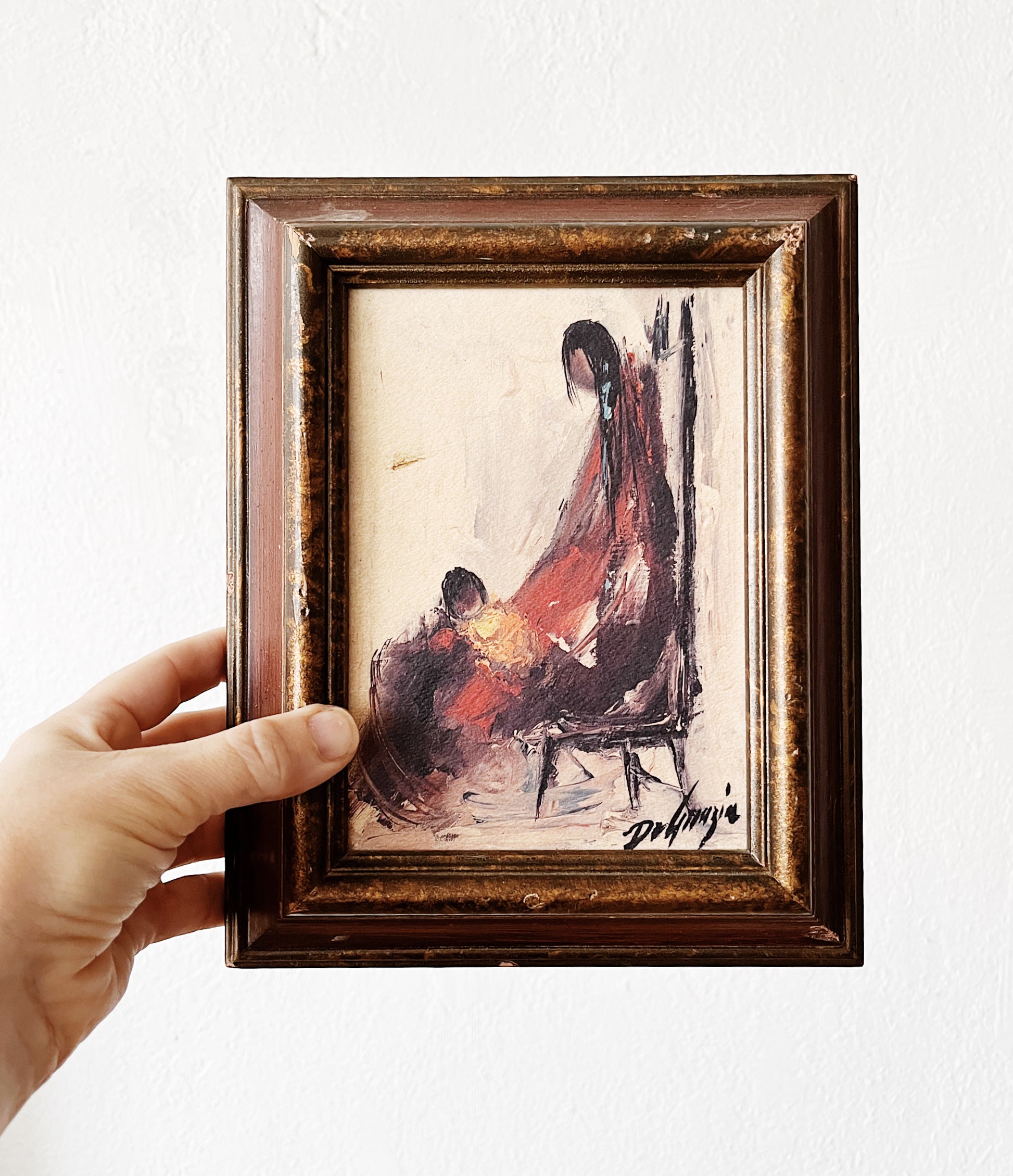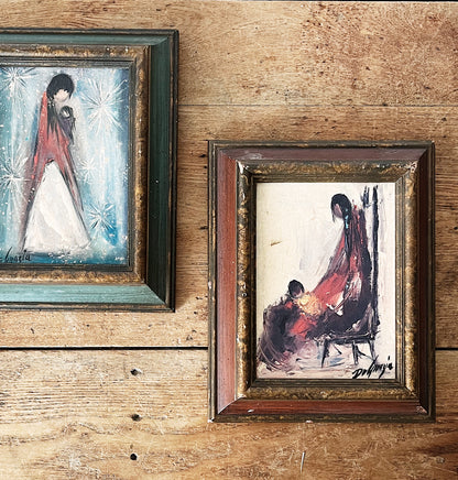 Lovely painterly DeGrazia pressed lithos, framed in mid century wood.