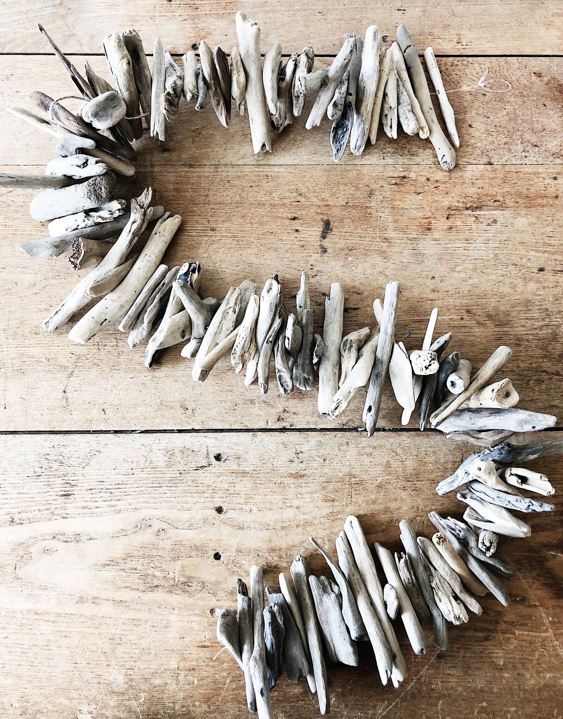 Faded and weathered driftwood strung up to make a nice long hanging