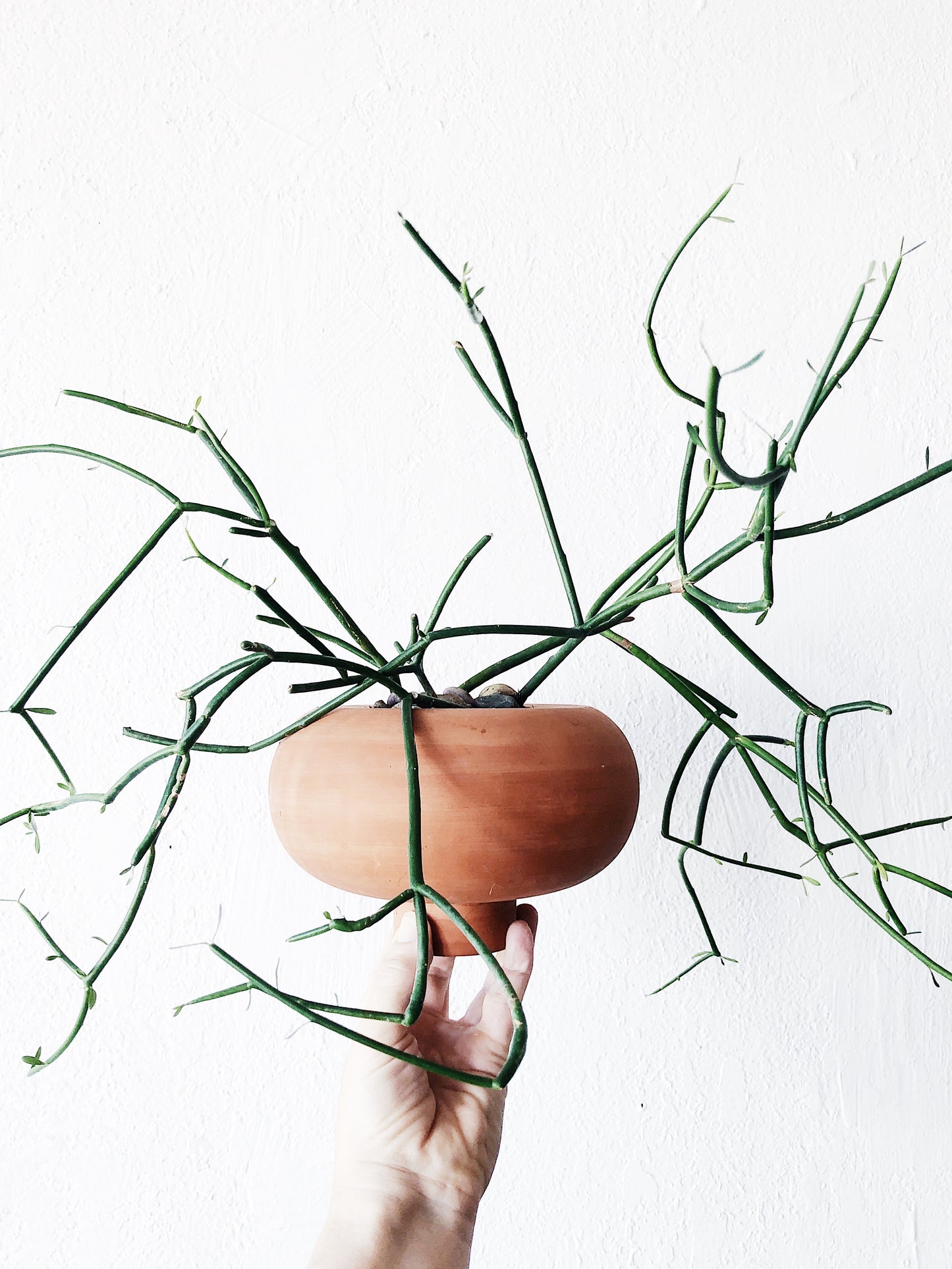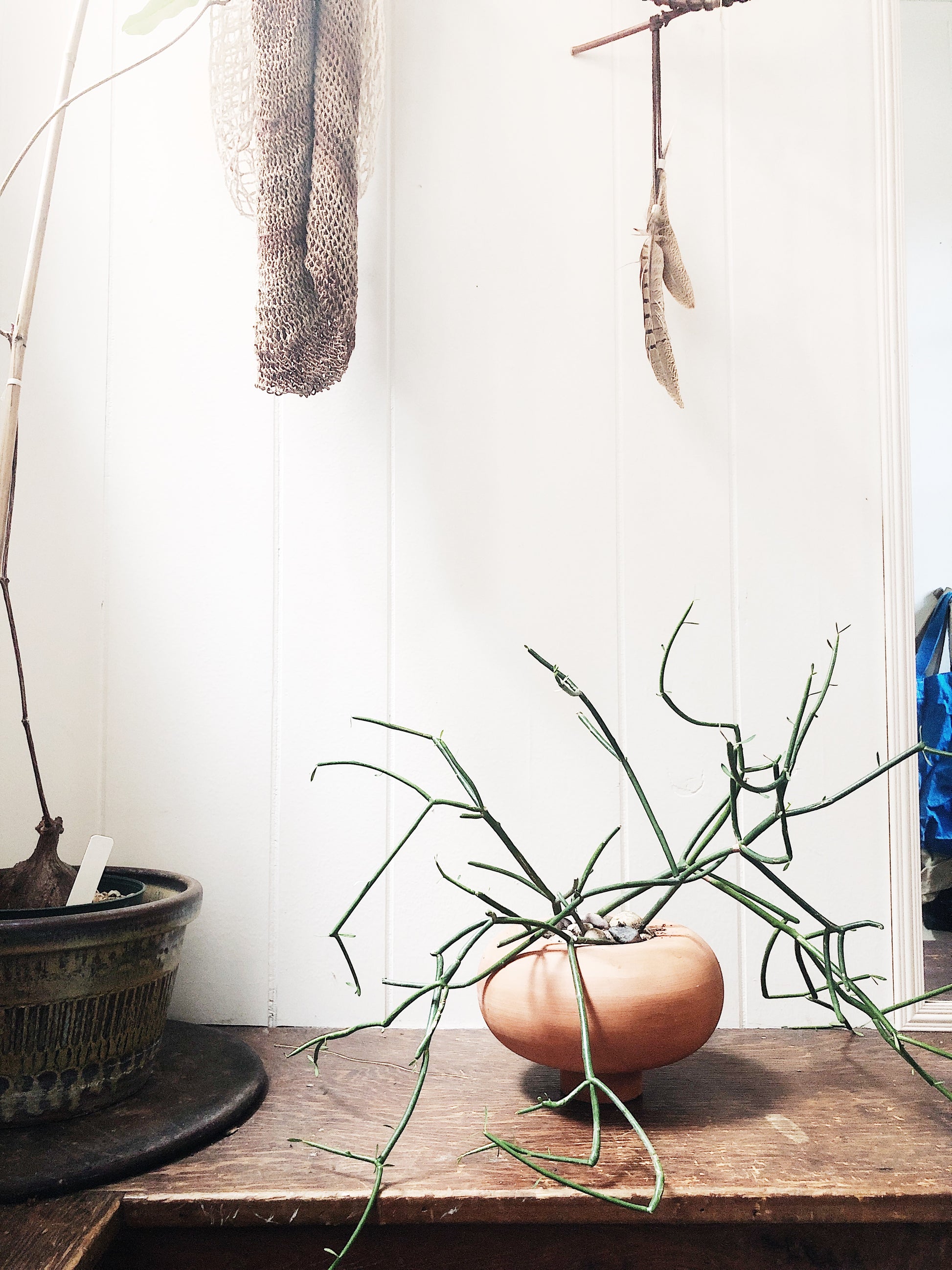 A sculptural Euphorbia tirucalli, pencil cactus, potted in vintage terra from Japan. We aren’t sure which is prettier the plant or the pot. A match made in heaven.