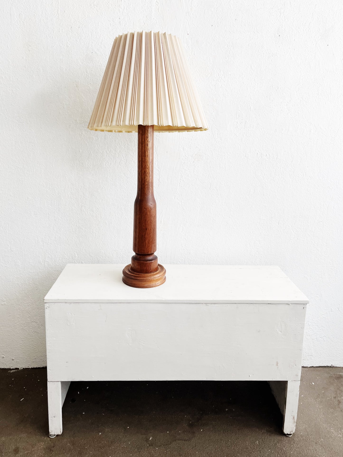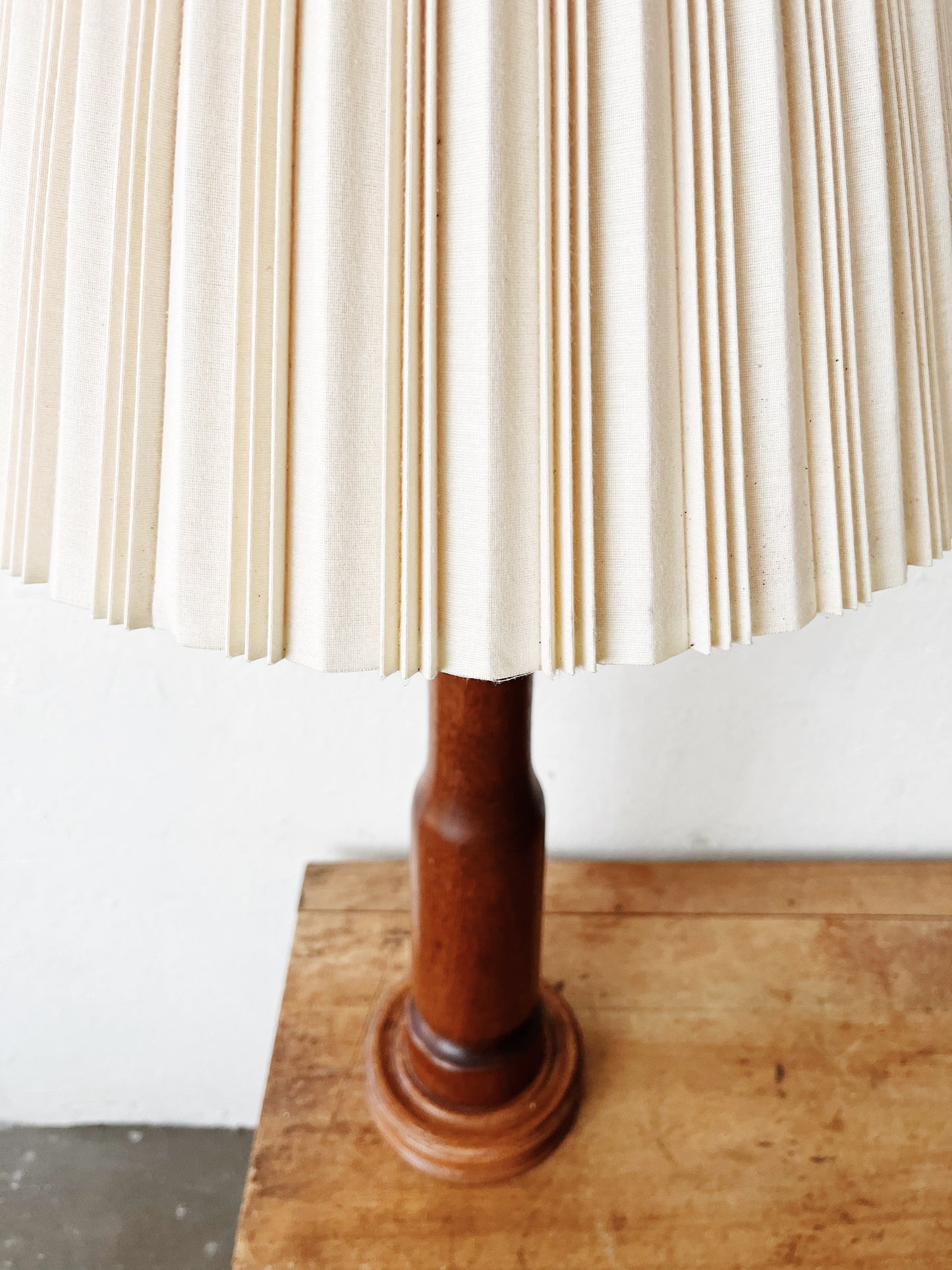 Really stunning shape to this tall mid century lamp. Looks handmade and very well at that. Stately and yet subtle. Has a pleated linen shade. Love this one