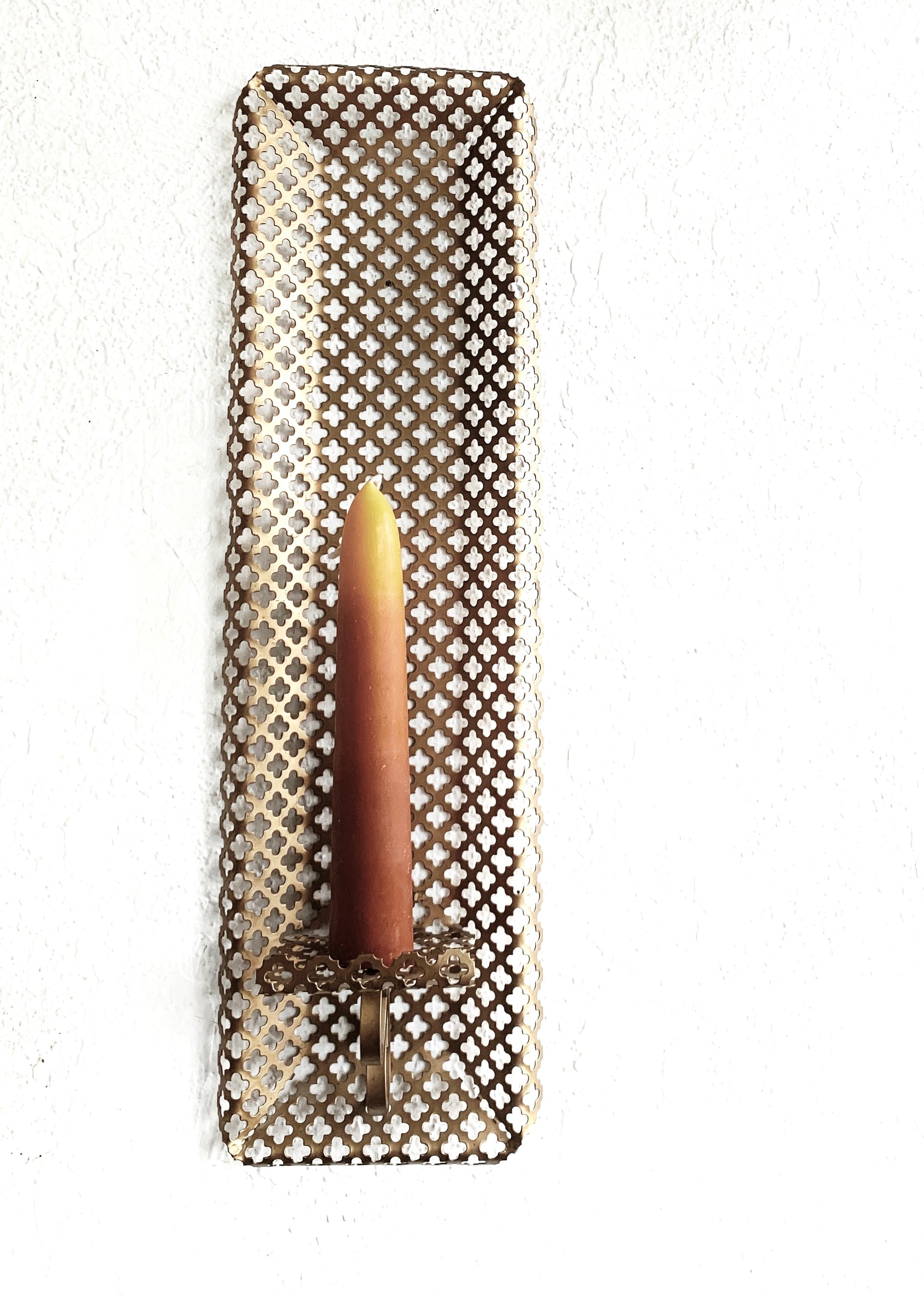 Goldtone mid century wall sconce for pillar candle. Great look! *candle not included