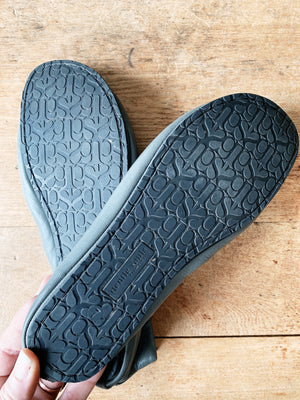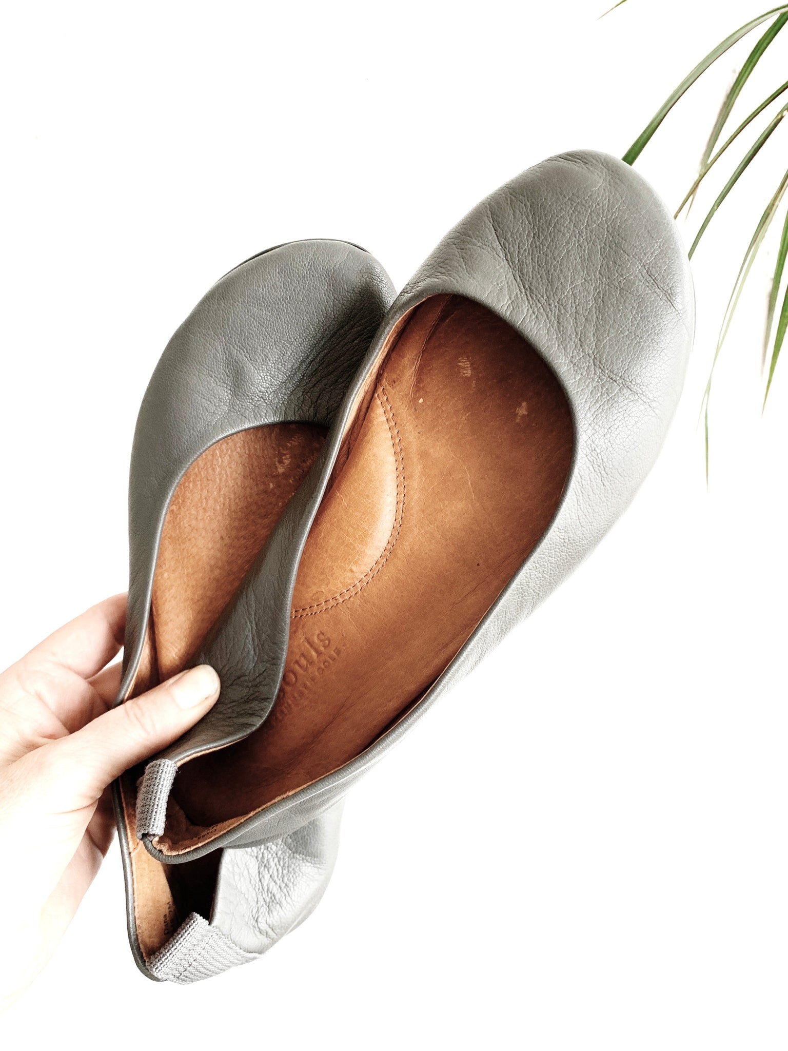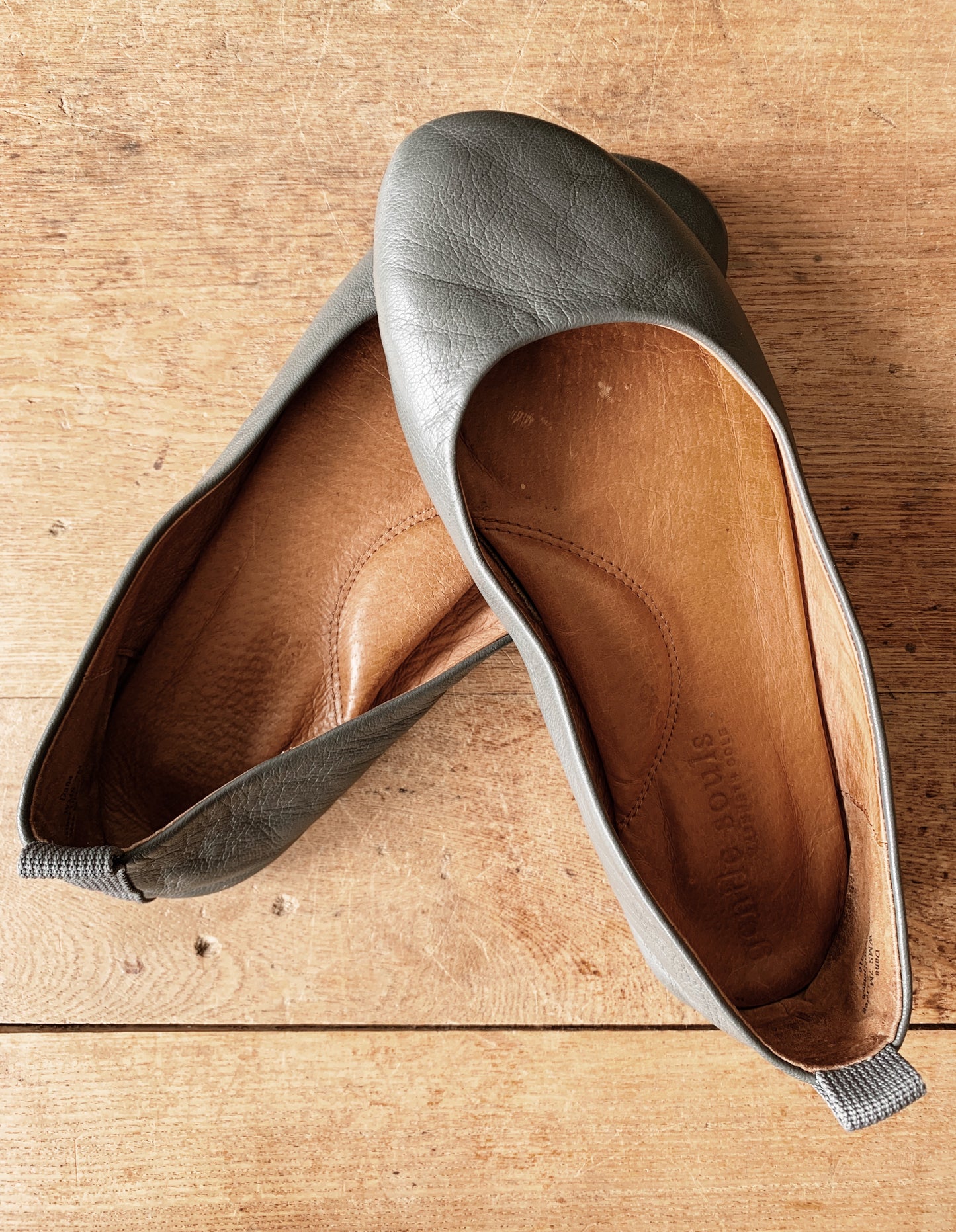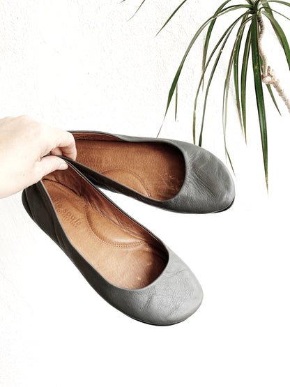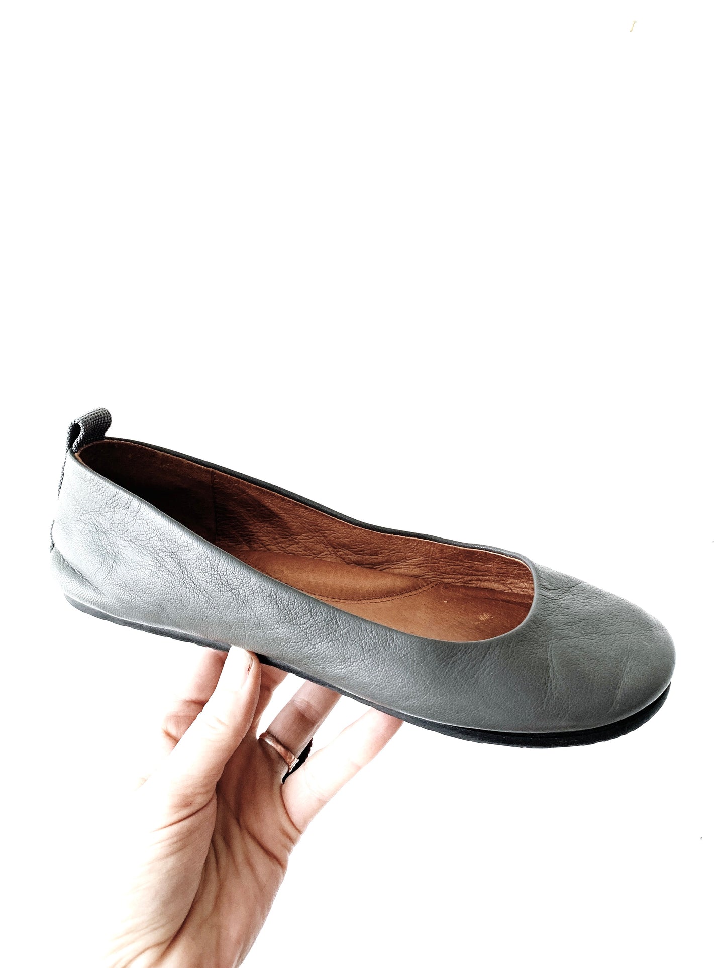 Buttery soft grey leather ballet flats by high end maker, Gentle Souls. Super comfy and cute, in great shape. A flat with support!