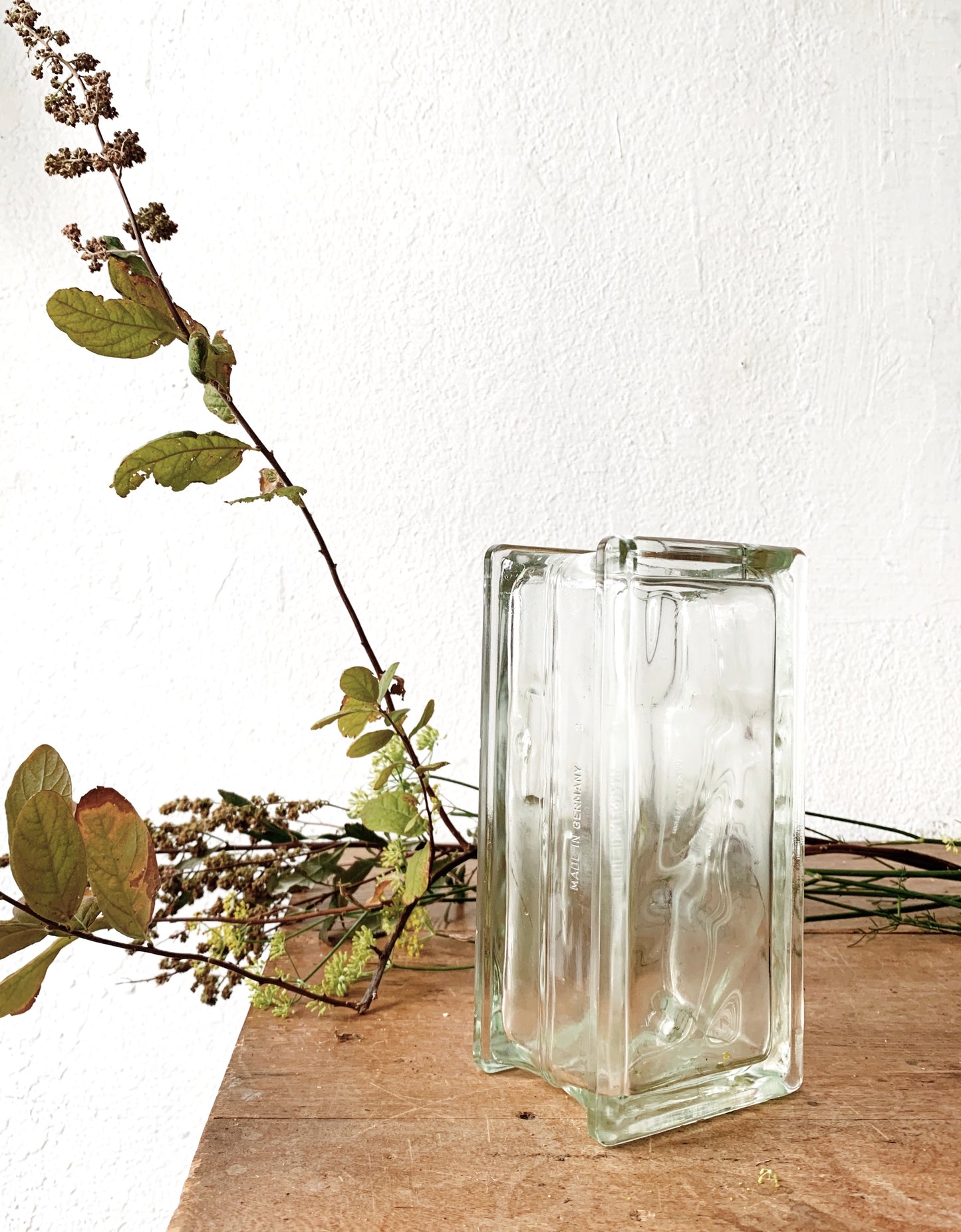 Chunky thick glass block vase made in Germany