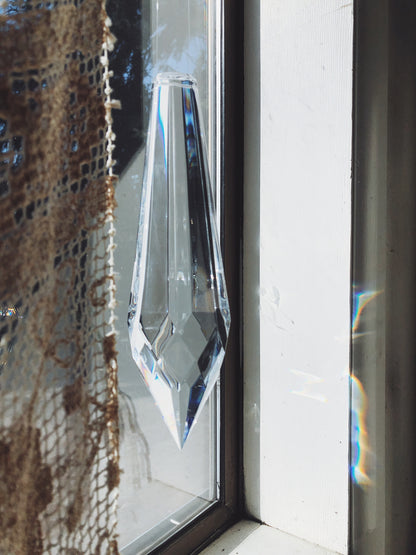 This amazing crystal is made from hard clear resin, resembling glass. A full nine inches of rainbow possibilities. Just hang in a sunny window and let it do it’s magic