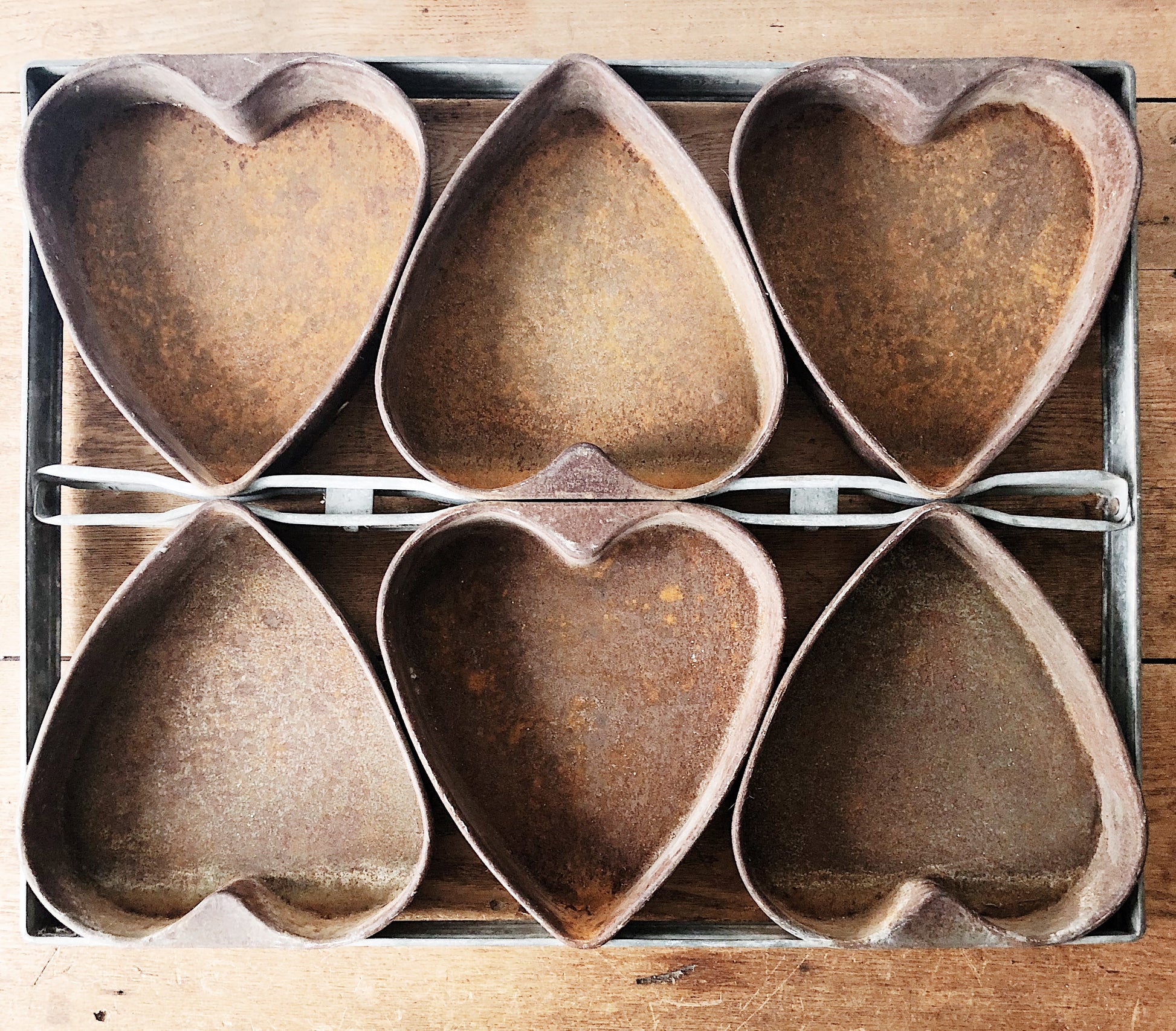 A large and heavy steel cake pan. Heart shaped are charming. Clean it up for use, but display, planting or storage are two great options as well