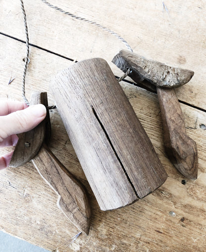 Primitive goat bell of old wood. Clamp clomp sounds of the country