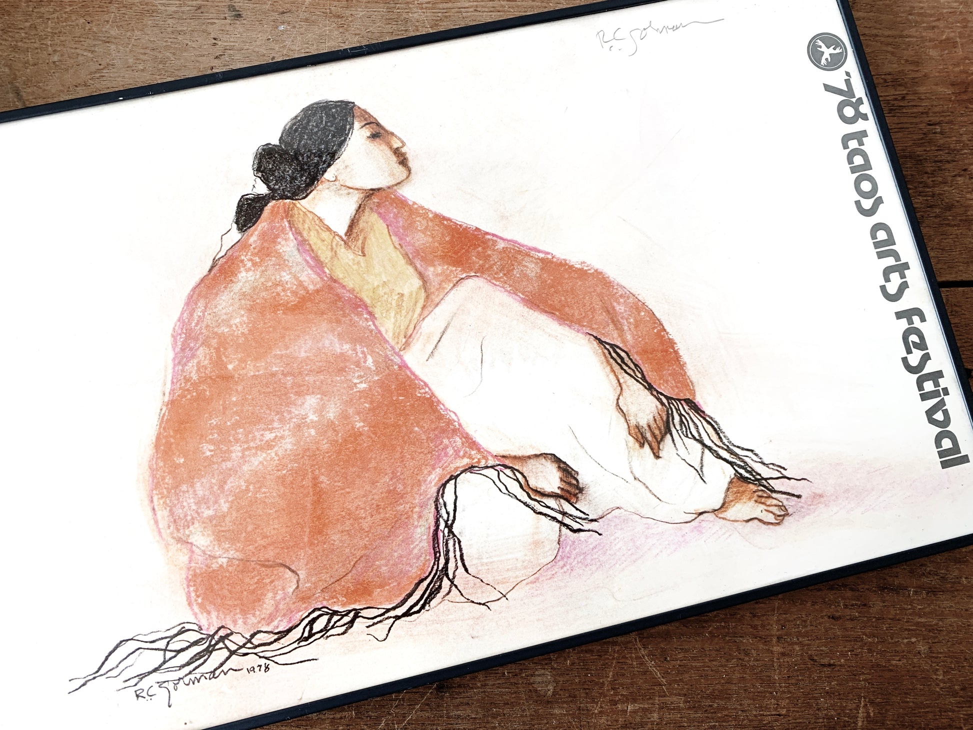 A beautiful signed R.C. Gorman Taos Arts Festival print. Framed in metal. C1978