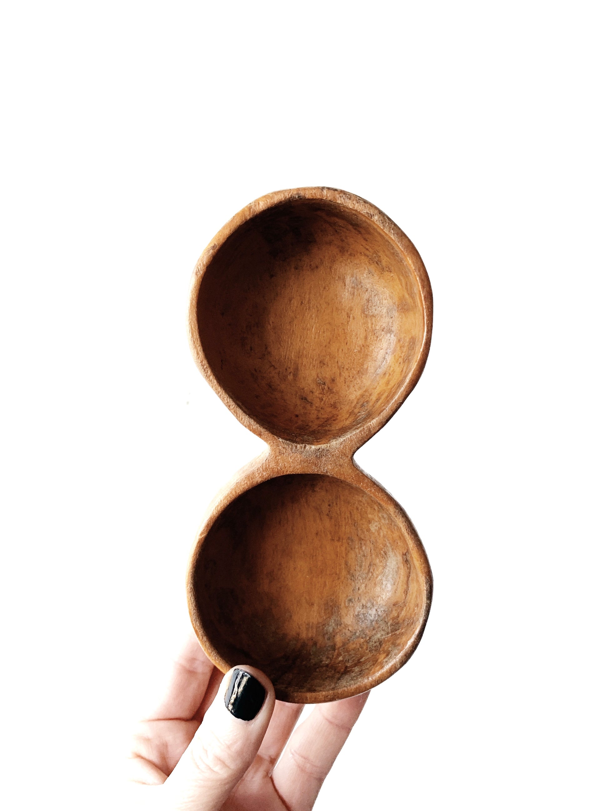 Hand Carved Vintage Double Wood Dish