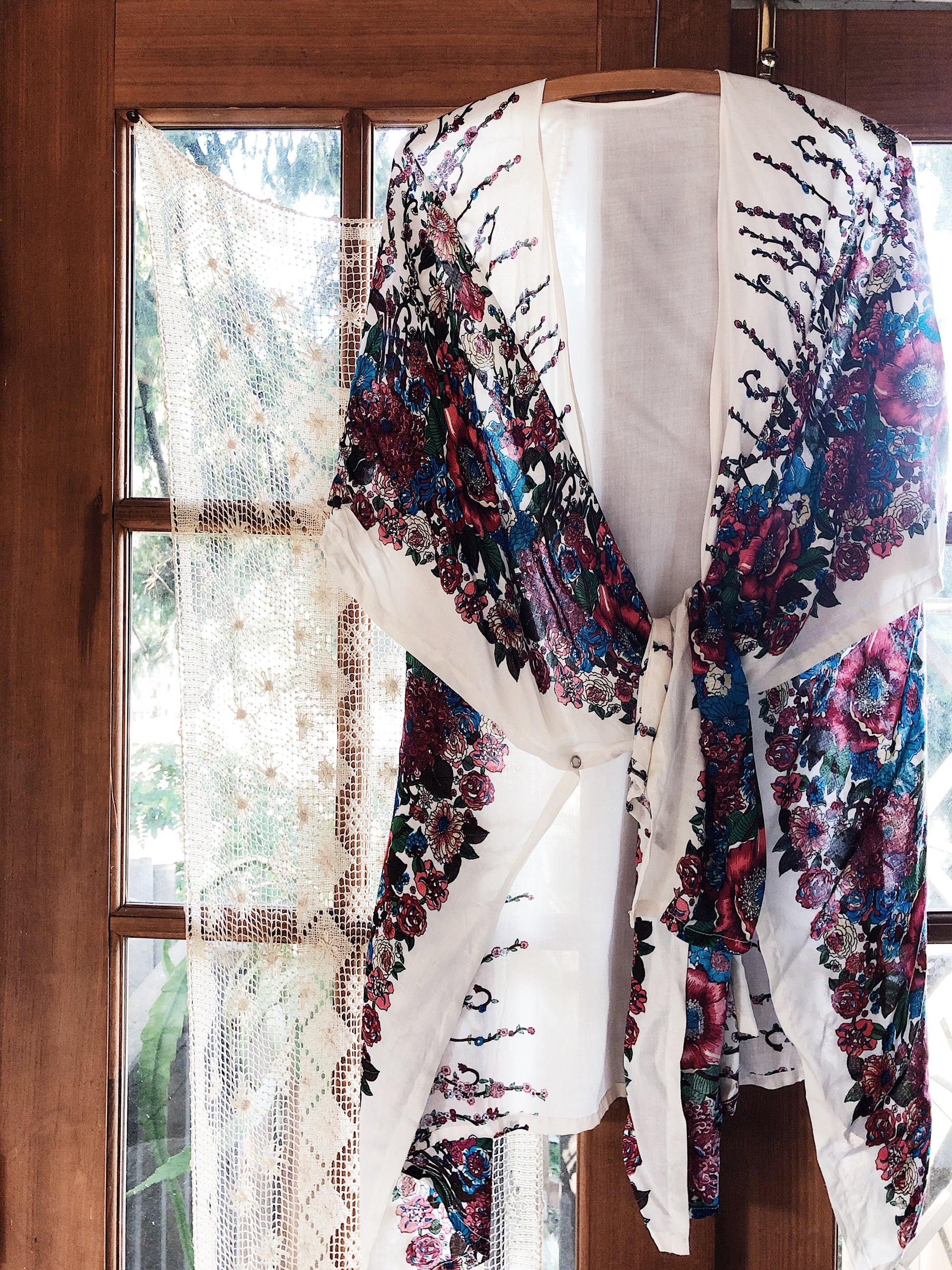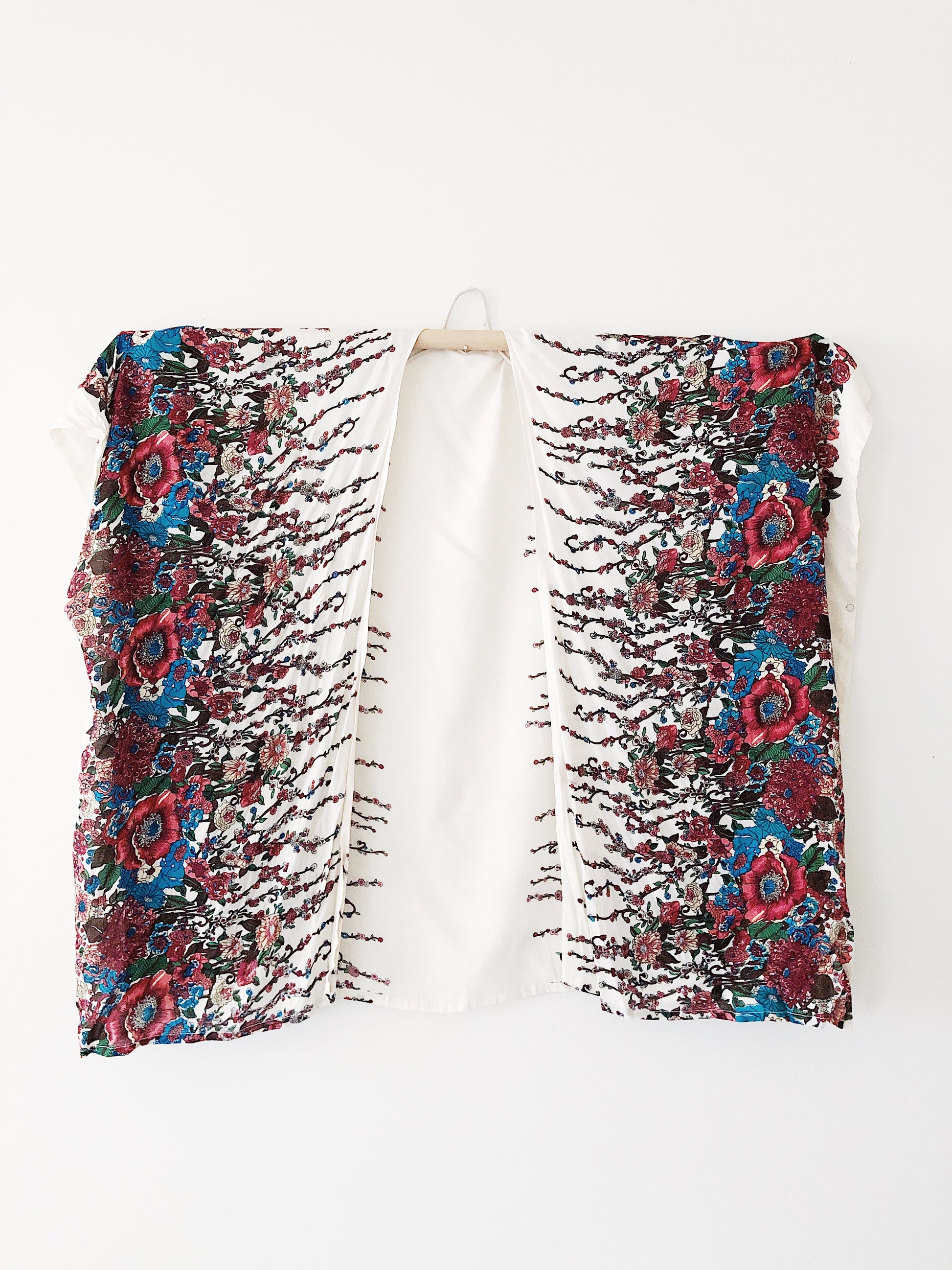 Light weight and airy made from a Balinese textile. Woven cotton rayon is super soft and flows. Great as a swimsuit cover-up, over a simple dress, or even as a robe. Snaps under each arm.