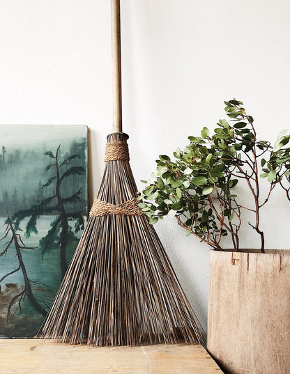 A beautiful blend of form and function. Handmade bamboo reed broom is perfect for indoor sweeping as well as light outdoor chores. Lovely weave patterning