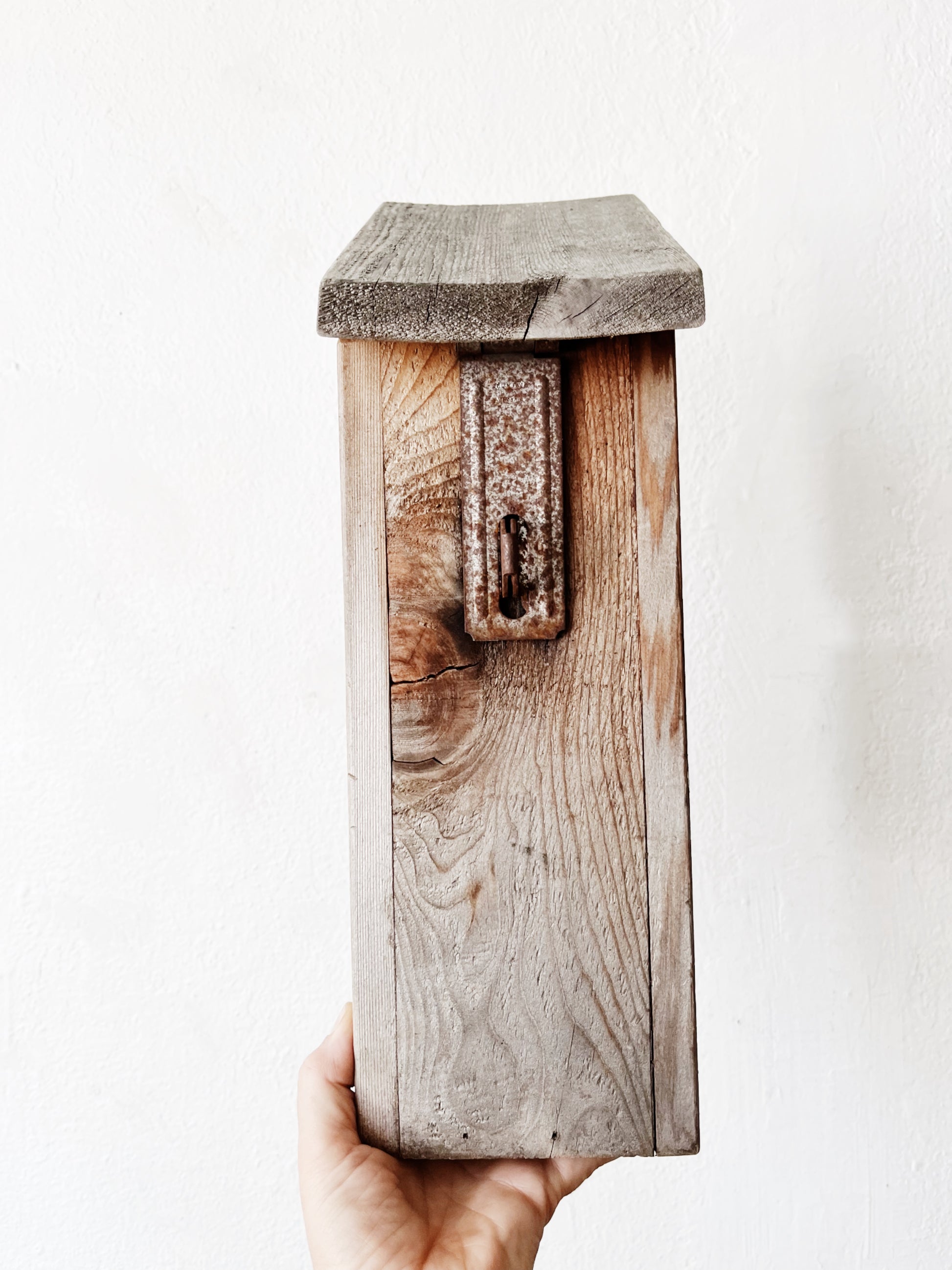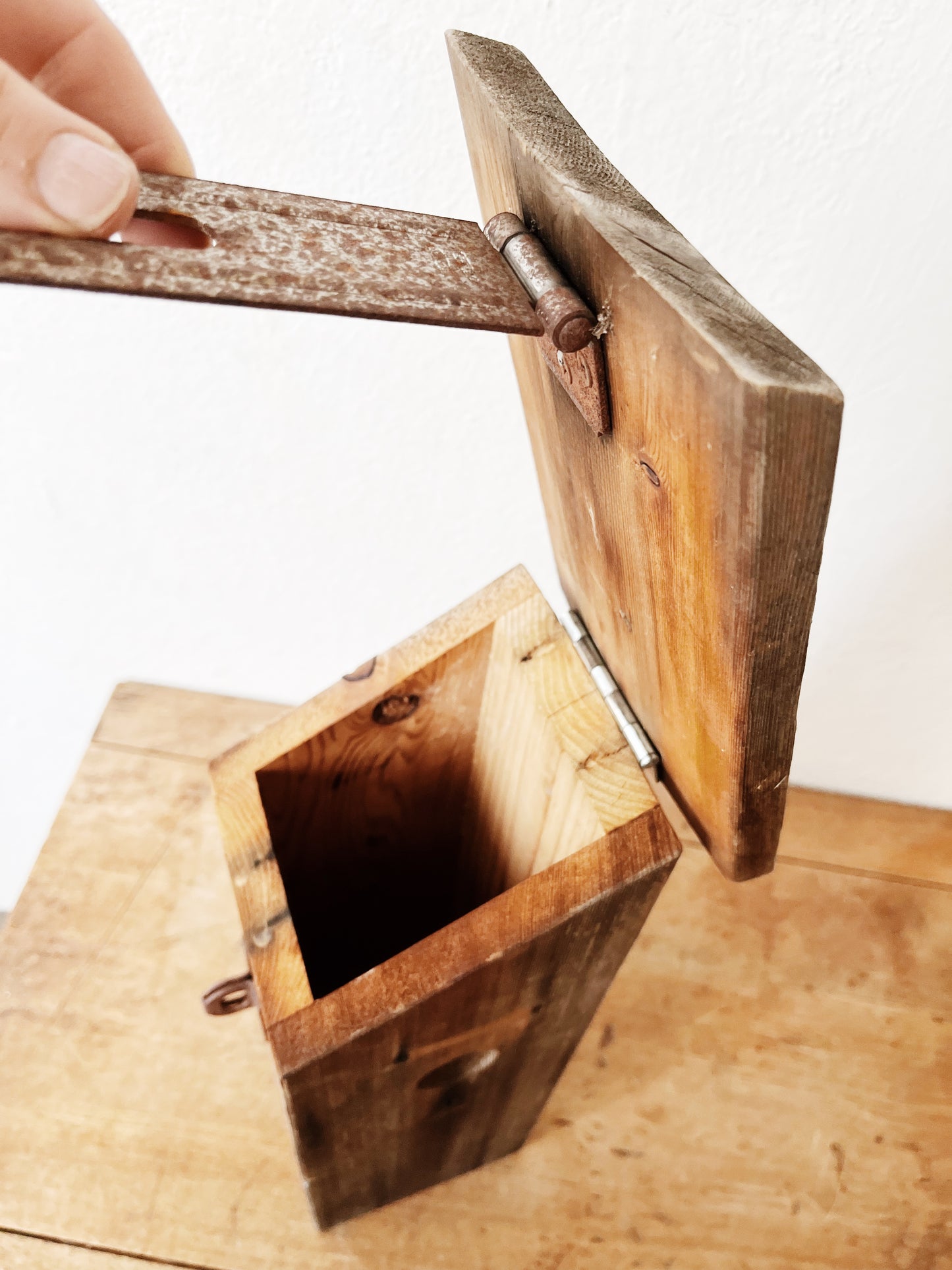 Sweet primitive style bird house for our little winged friends. Top hinges open