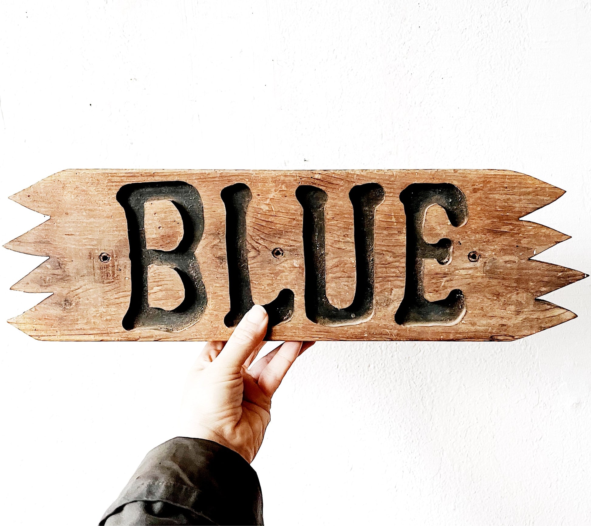 Thick rustic sign with deeply carved lettering. Pre drilled holes for hanging