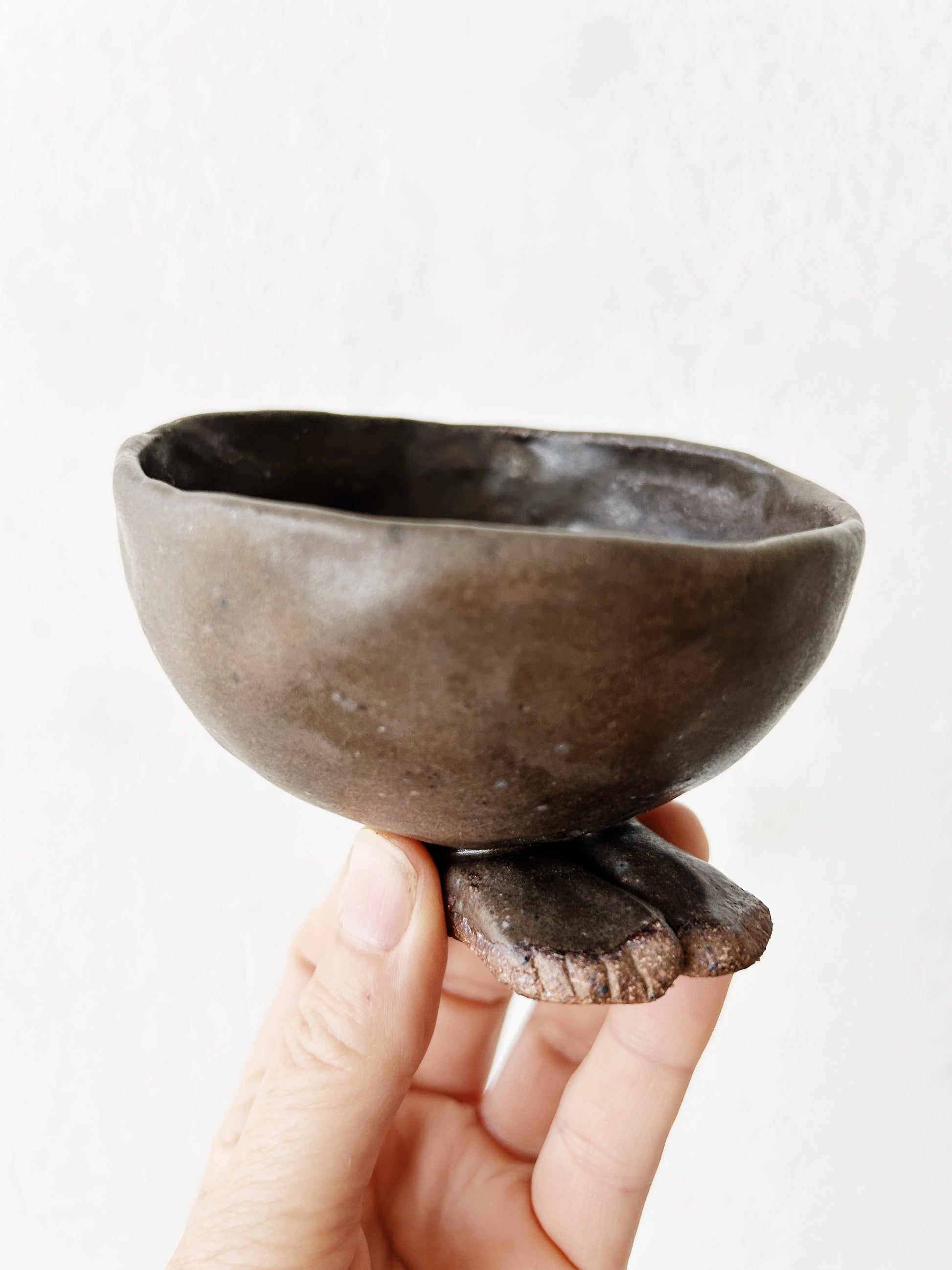 Handmade quirky little catchall dish, literally footed 🤣 organic offset shape and earthy brown glaze. A gem!