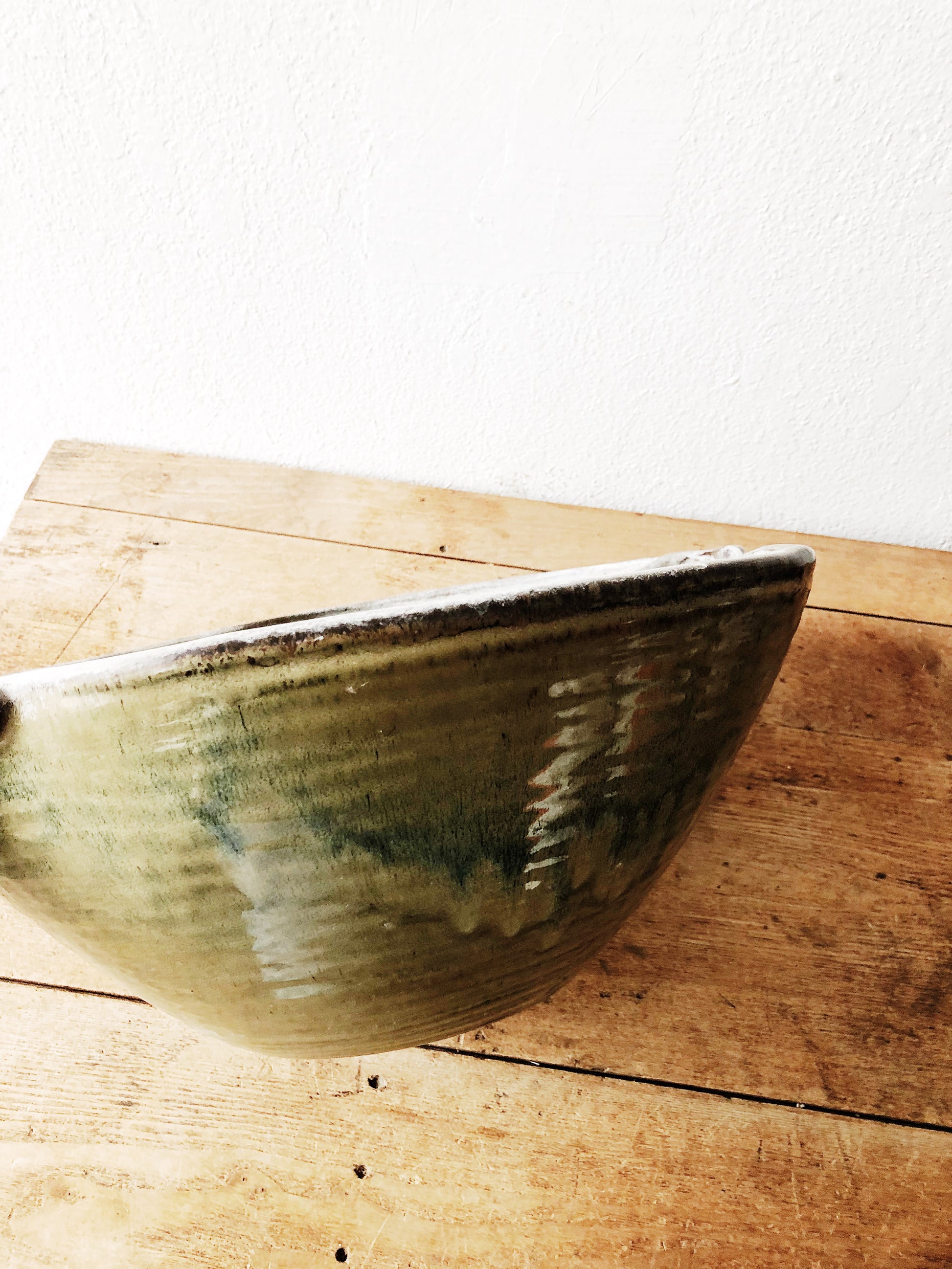 Really gorgeous handmade pottery basin that is set up to be a fountain. You could easily use this as a large planter as well. However the inside is really beautiful especially when filled with water