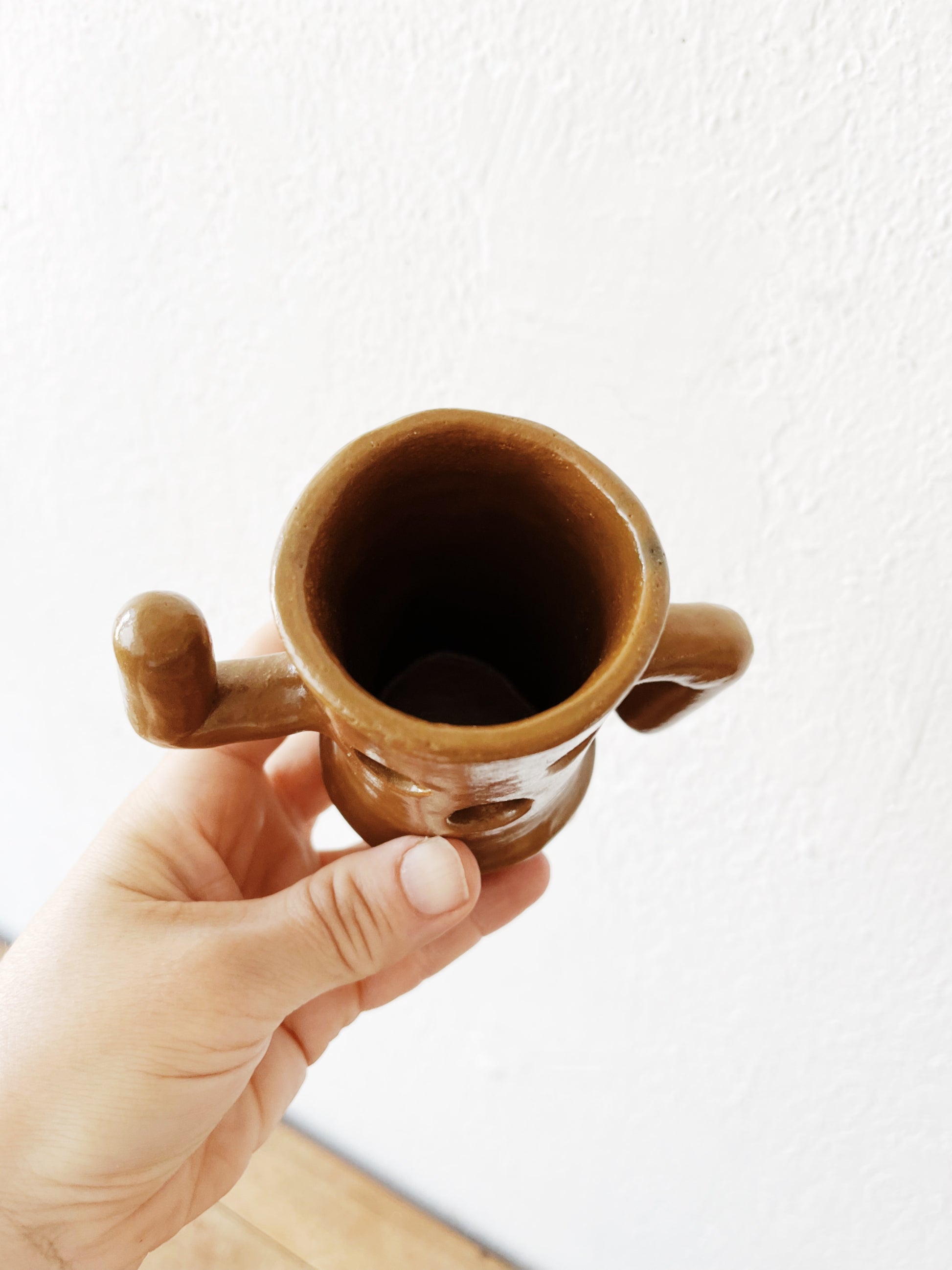 Hey doood. Cute gumbie-esque luminary made of clay. Will hold a bit of water in the base too, for your quirkiest bloom