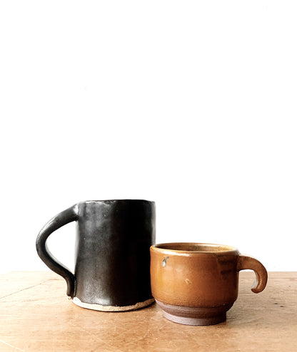 Wonderful handmade ceramic mug, large black or small brown. Sold individually.