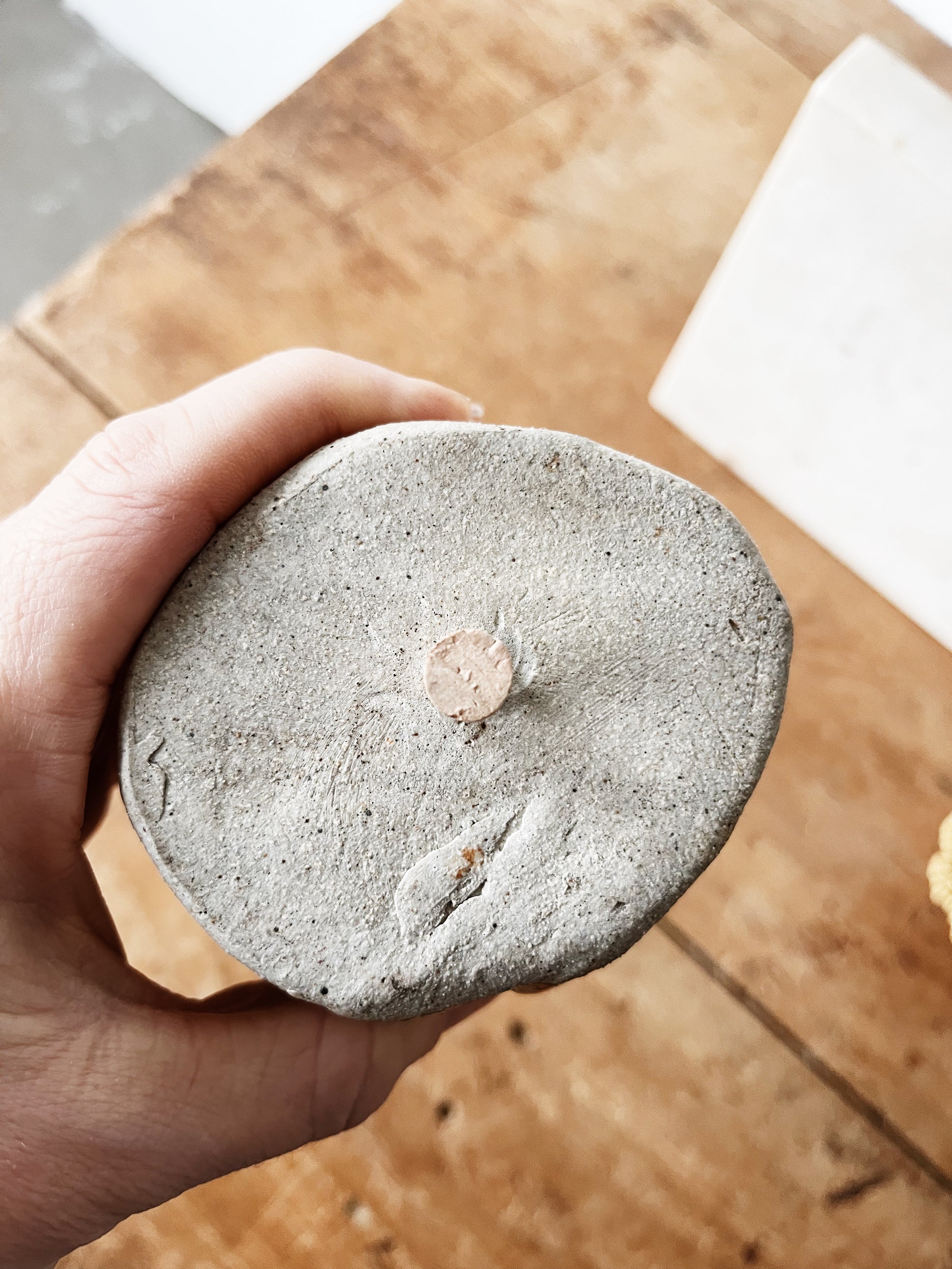 Handmade female bust vessel. Speckled earthy glaze. Has a hole for drainage but also a tiny cork for use to hold liquid. Genius!