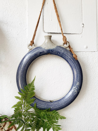 Beautiful circular Stoneware hanging vase. Such a cool design! Great for plant starts.