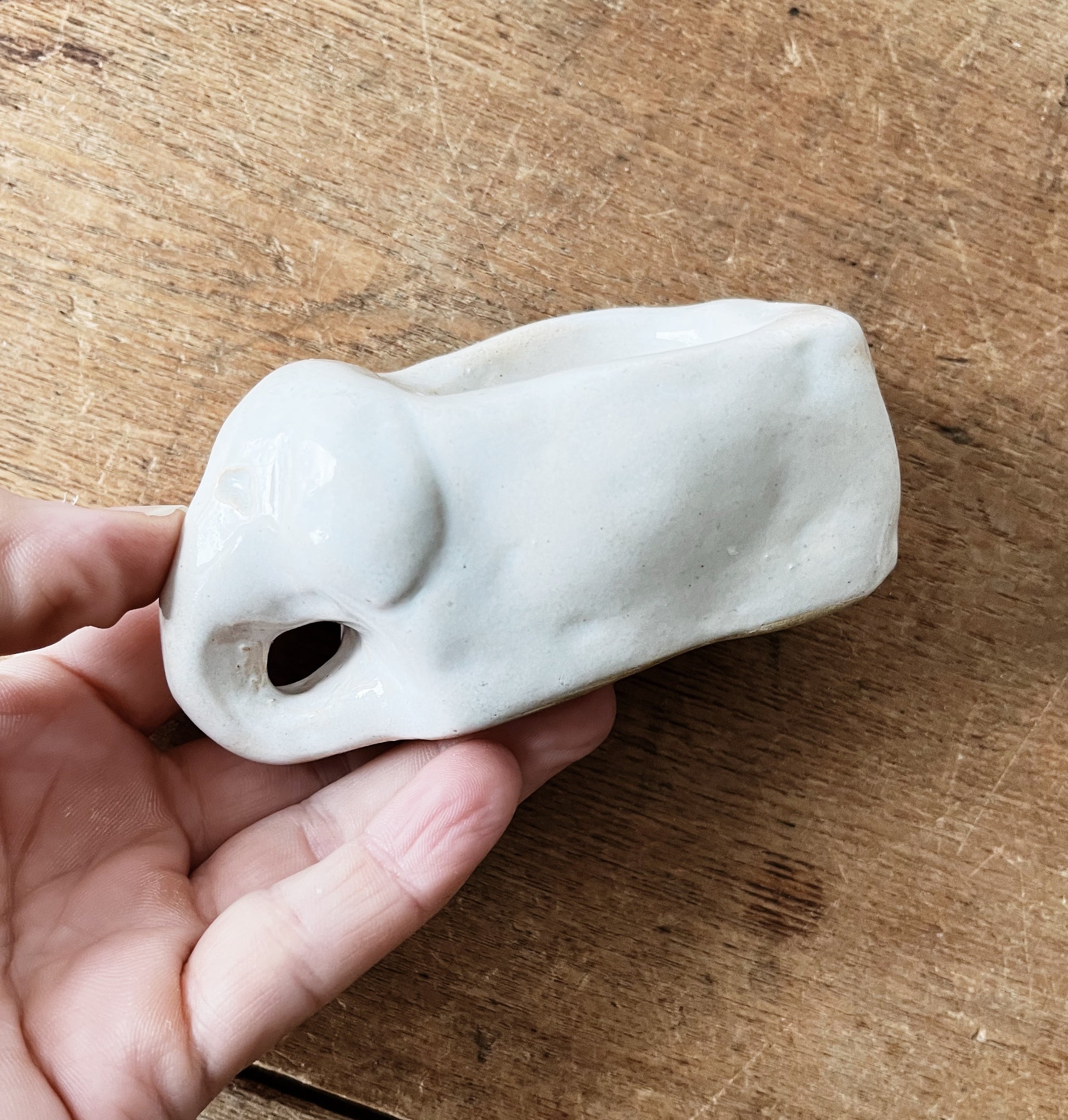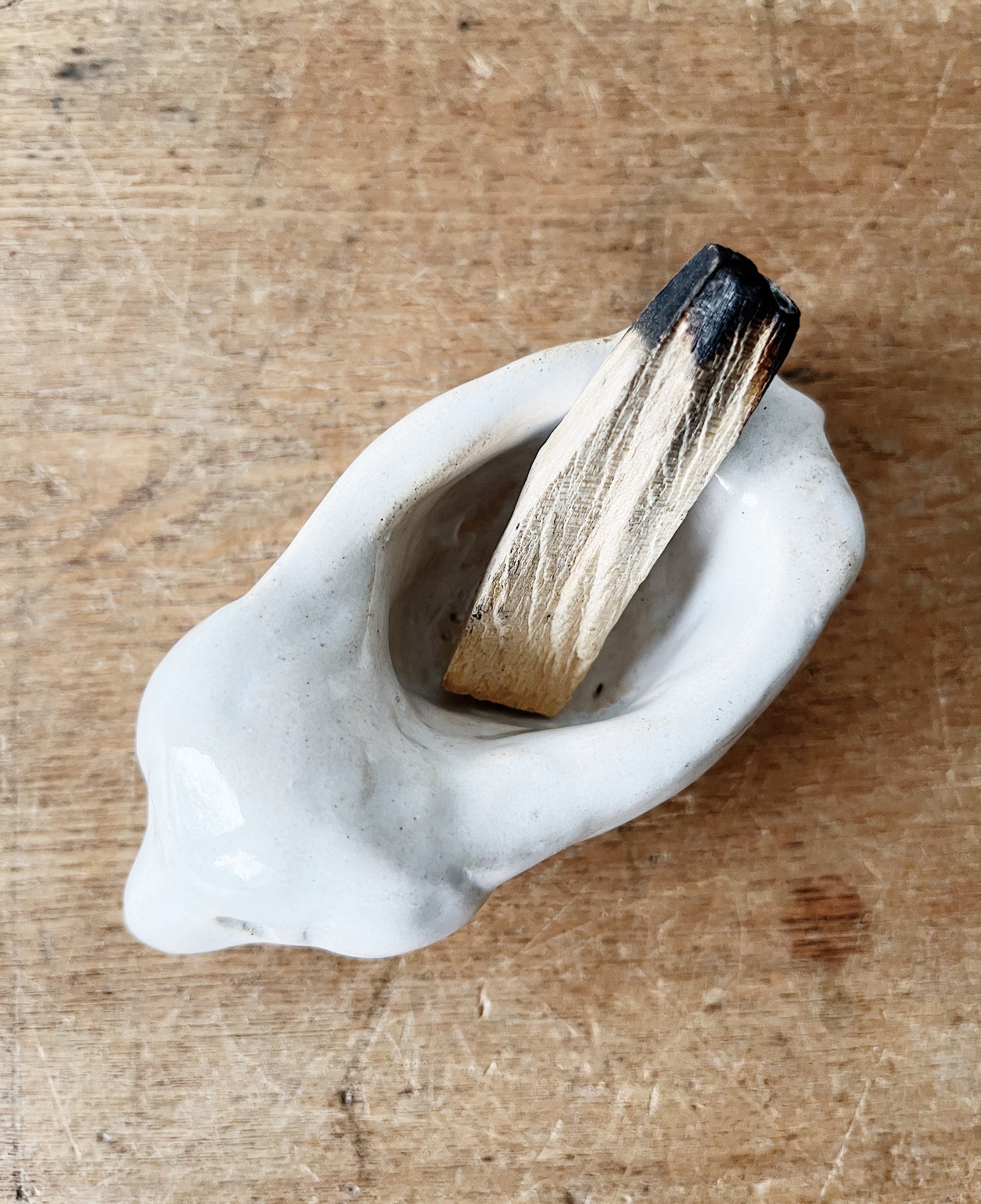 The sweetest little dish for incense or rings. Hand formed and chunky/weighty for the size