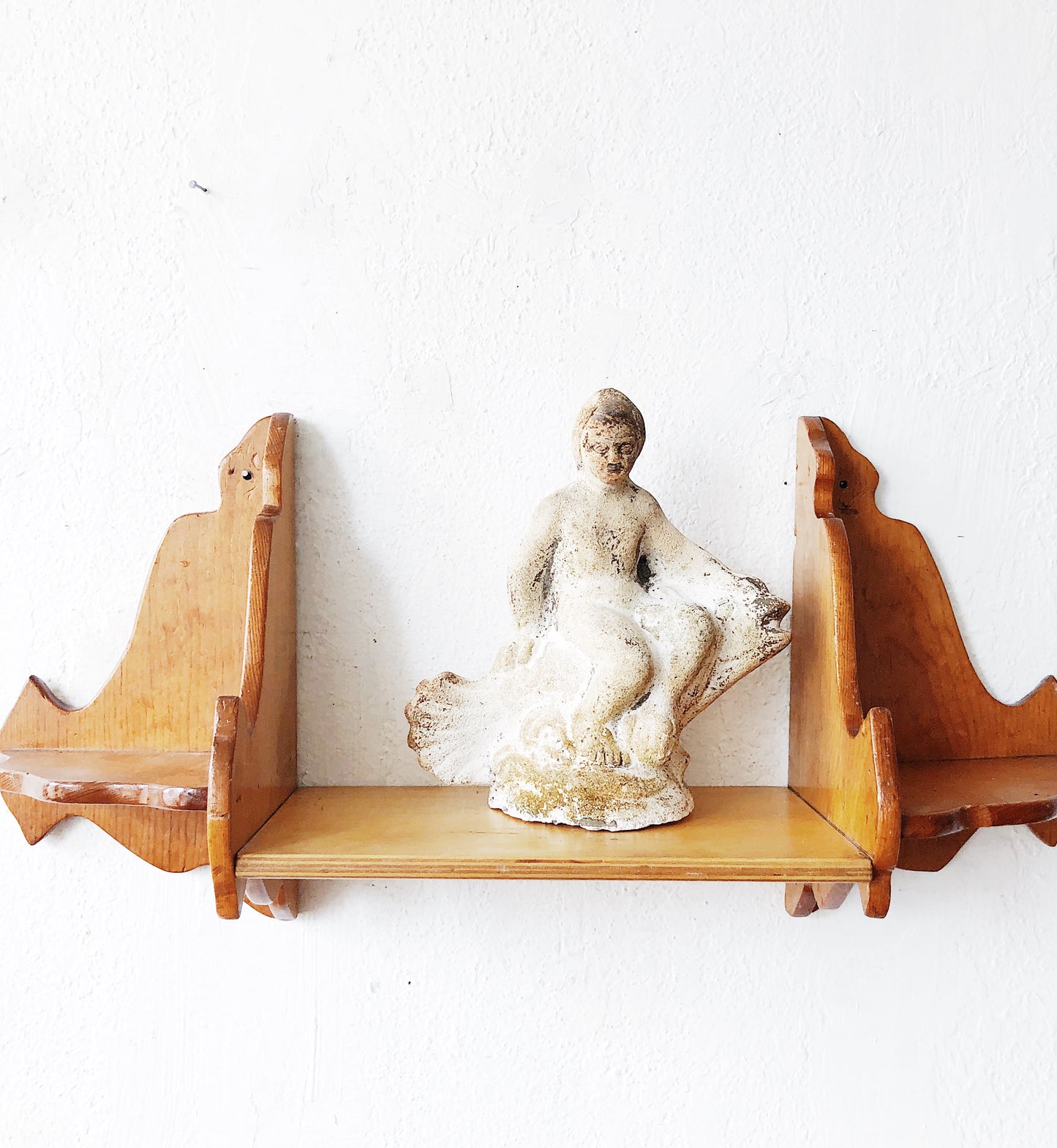 Nicely made shelf with corner sections in addition to the space between. Nail holes for hanging
