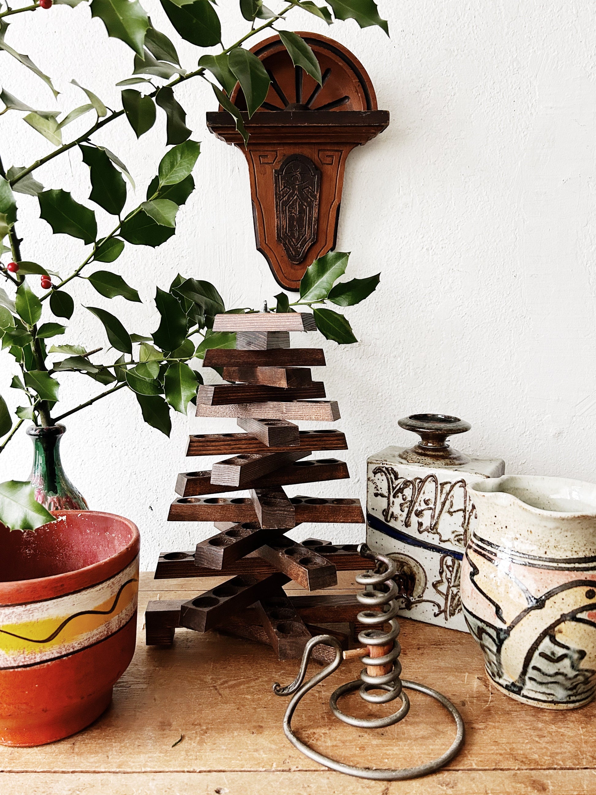 Handmade, signed pitcher. Glazed in the prettiest colors snd abstract landscape with bird design