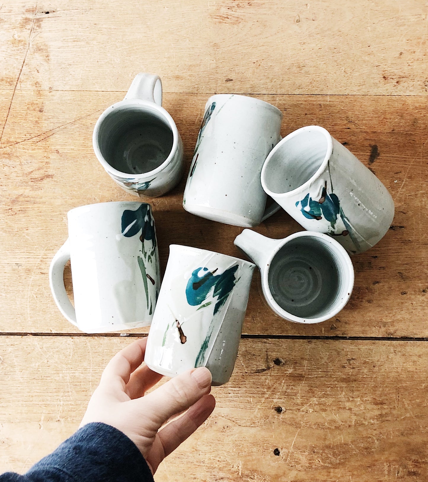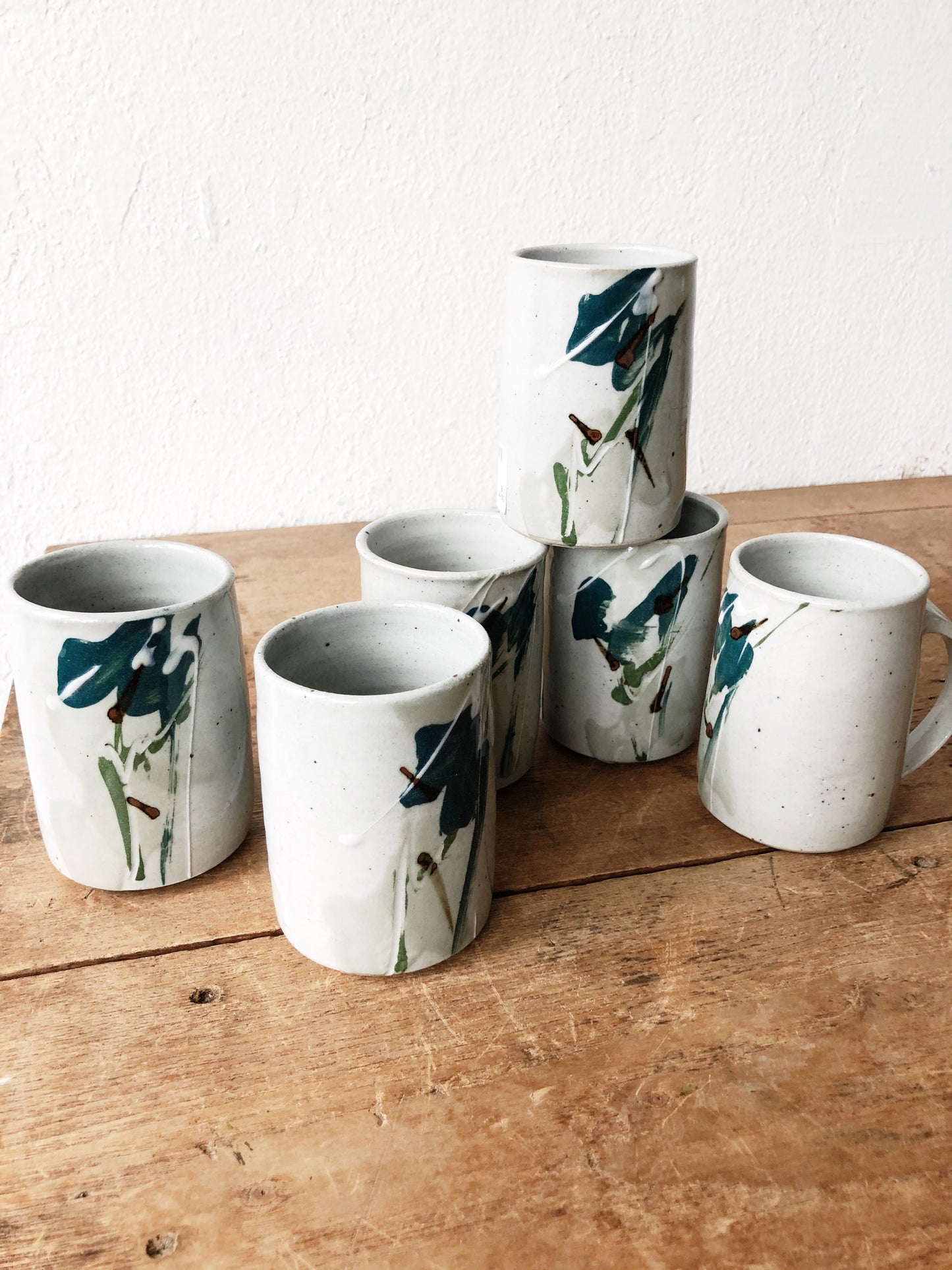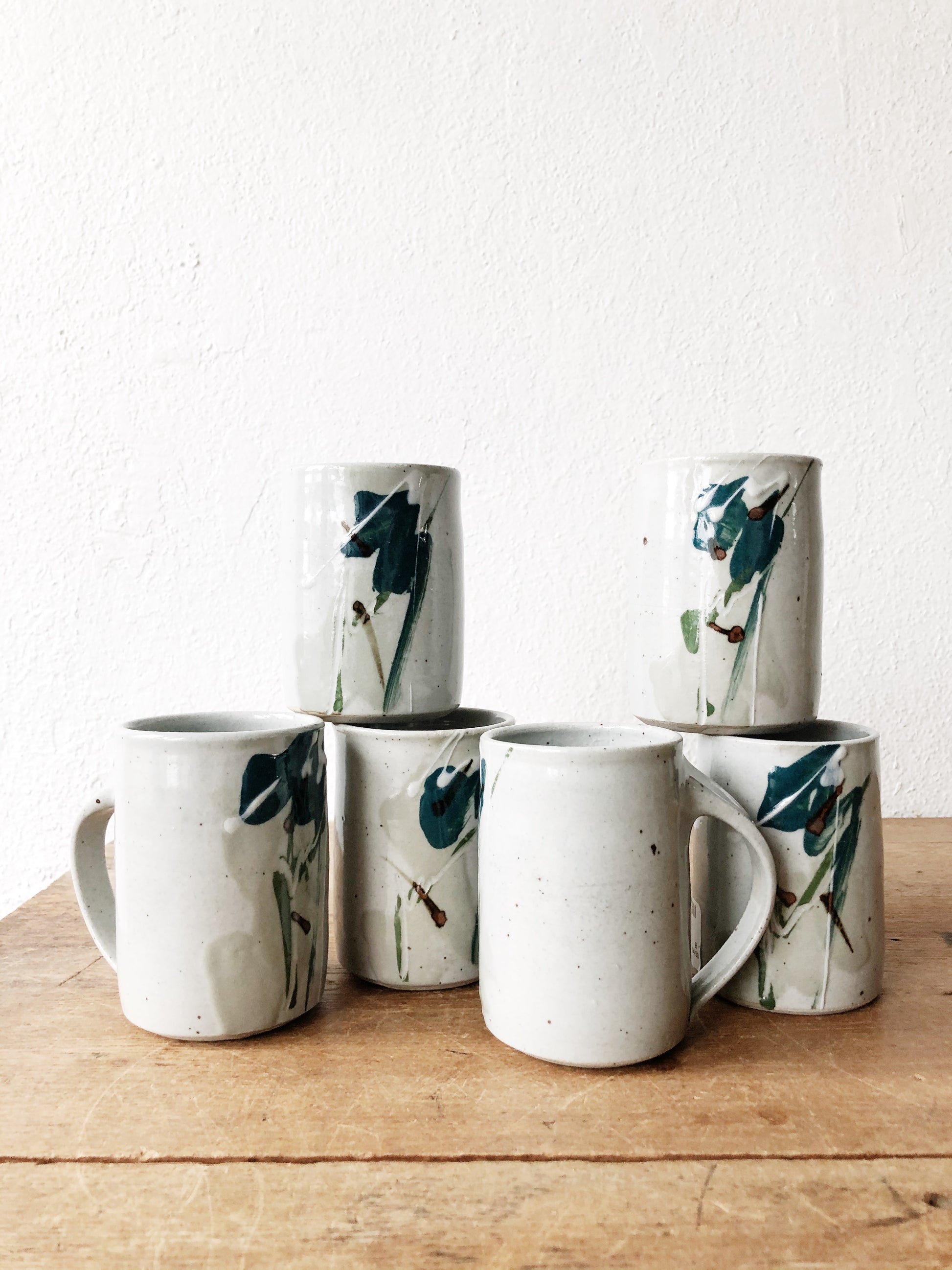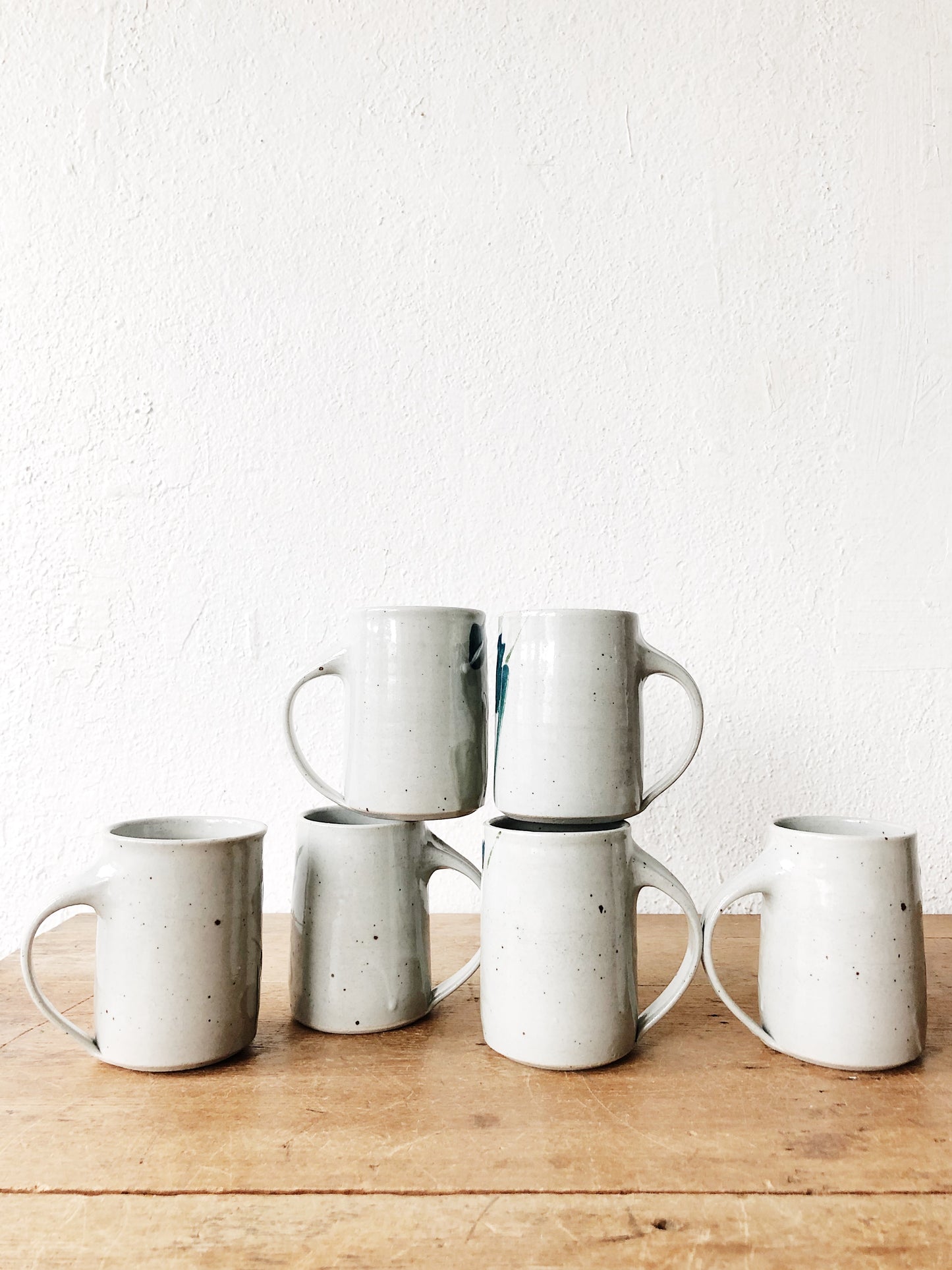 Beautifully made mugs in a set of six. So comfortable to hold...We love a good handle! Each is ever slightly so different in the way that handmade is.