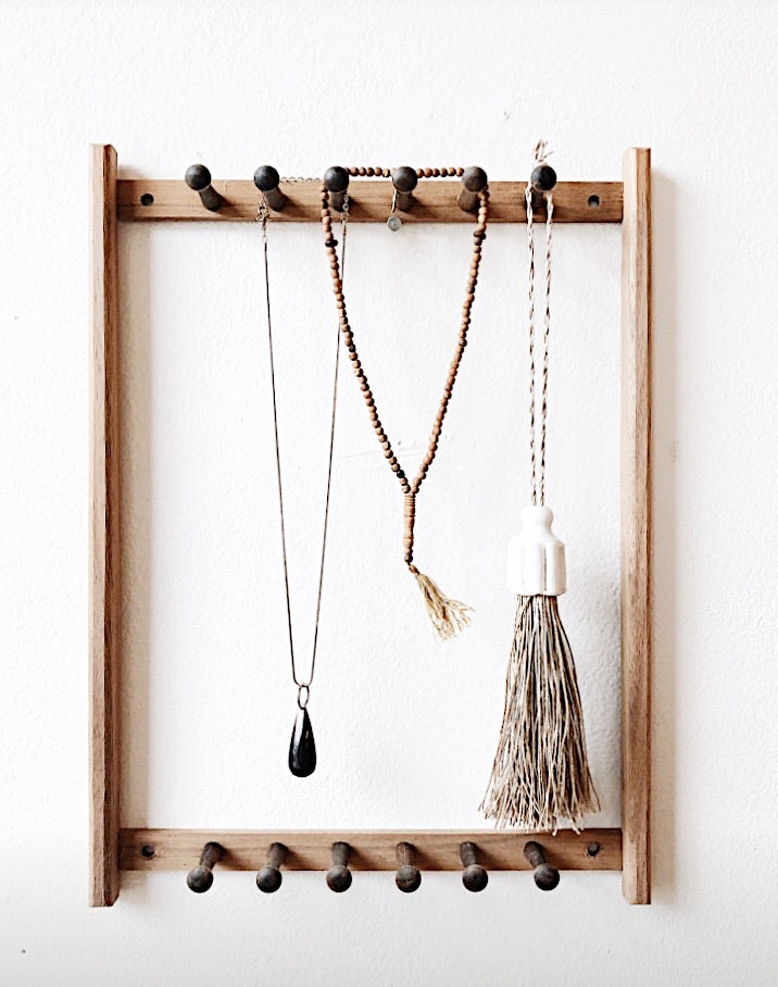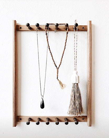 A handmade peg rack that’s really utilitarian as well as beautiful. Use it for hanging jewelry, keys, or decorative objects.