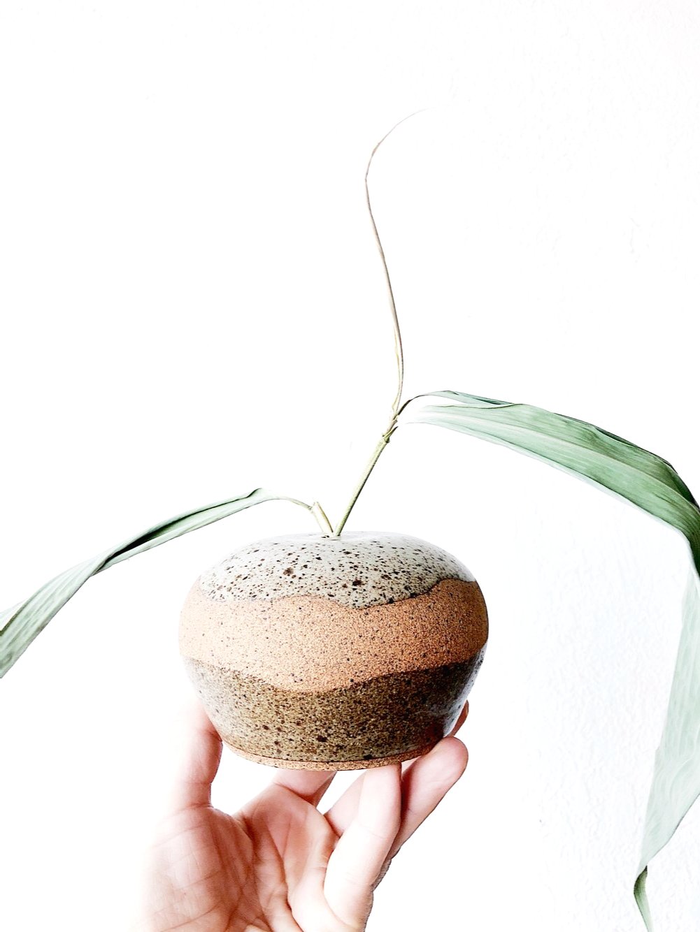 Beautiful made. Combination of raw unglazed and matte glazed clays. Speckled top