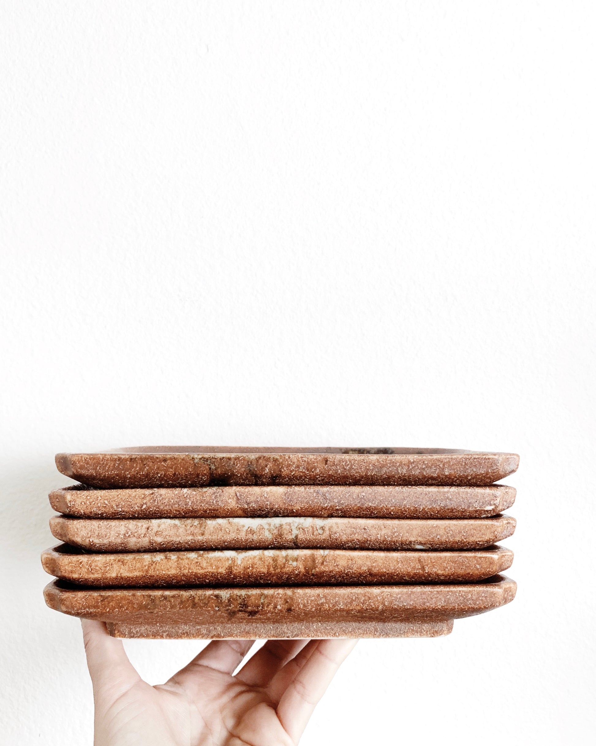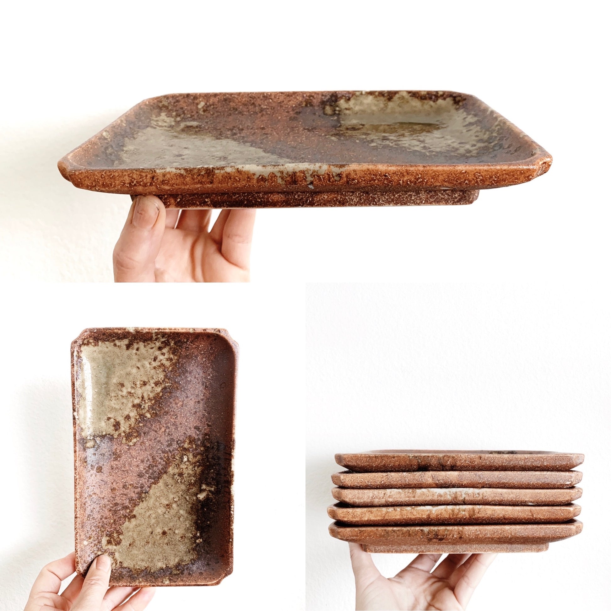 Beautiful set of five handmade appetizer dishes. Earth terra cotta and ochre glaze. Perfect condition