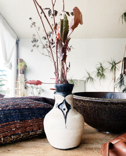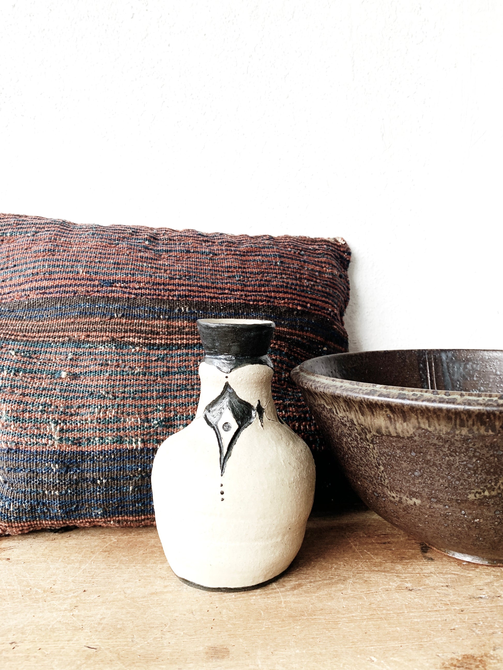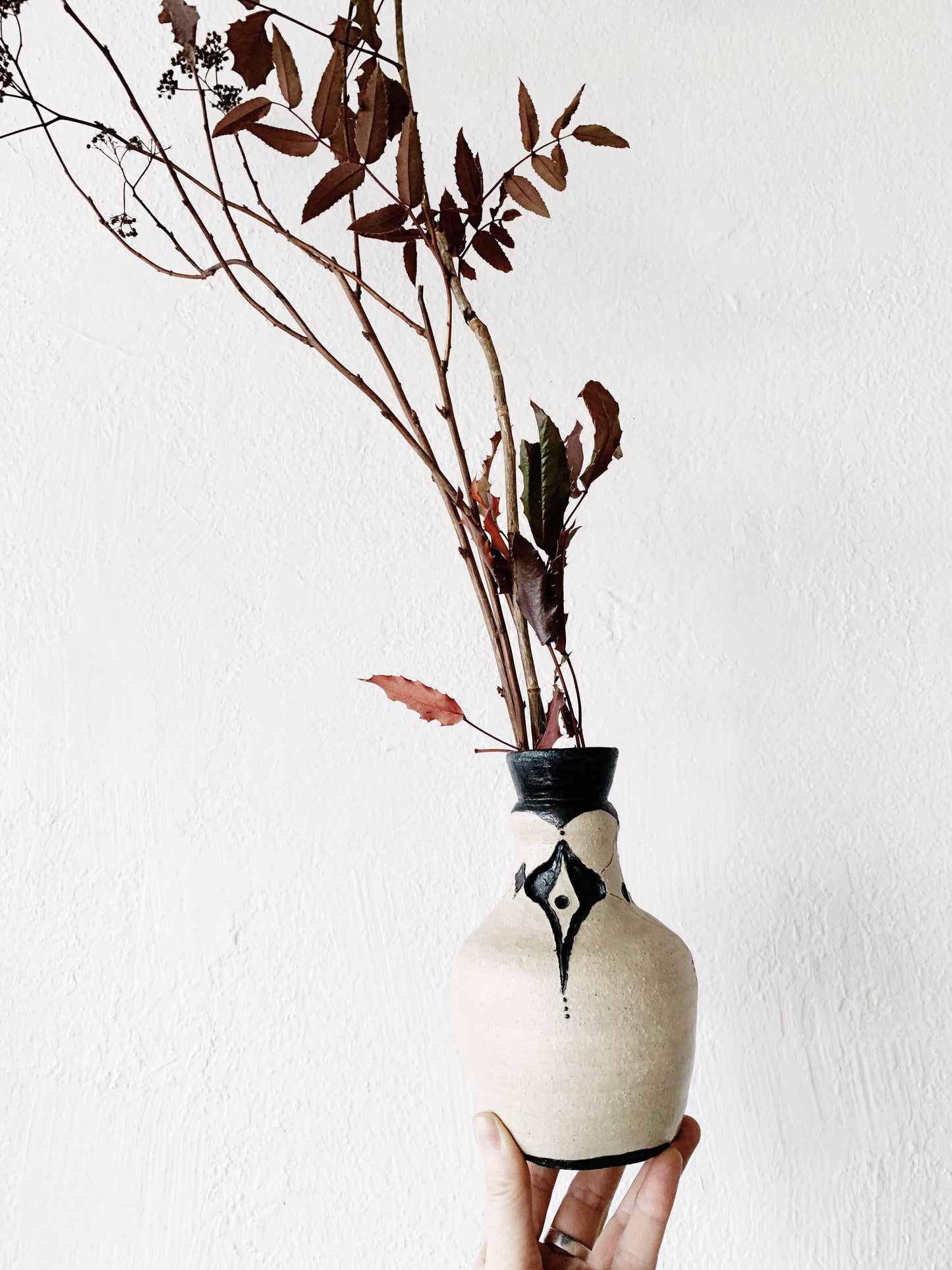 A wonderful handmade pottery vase with great incised detail and black and beige combo is 👌🏽