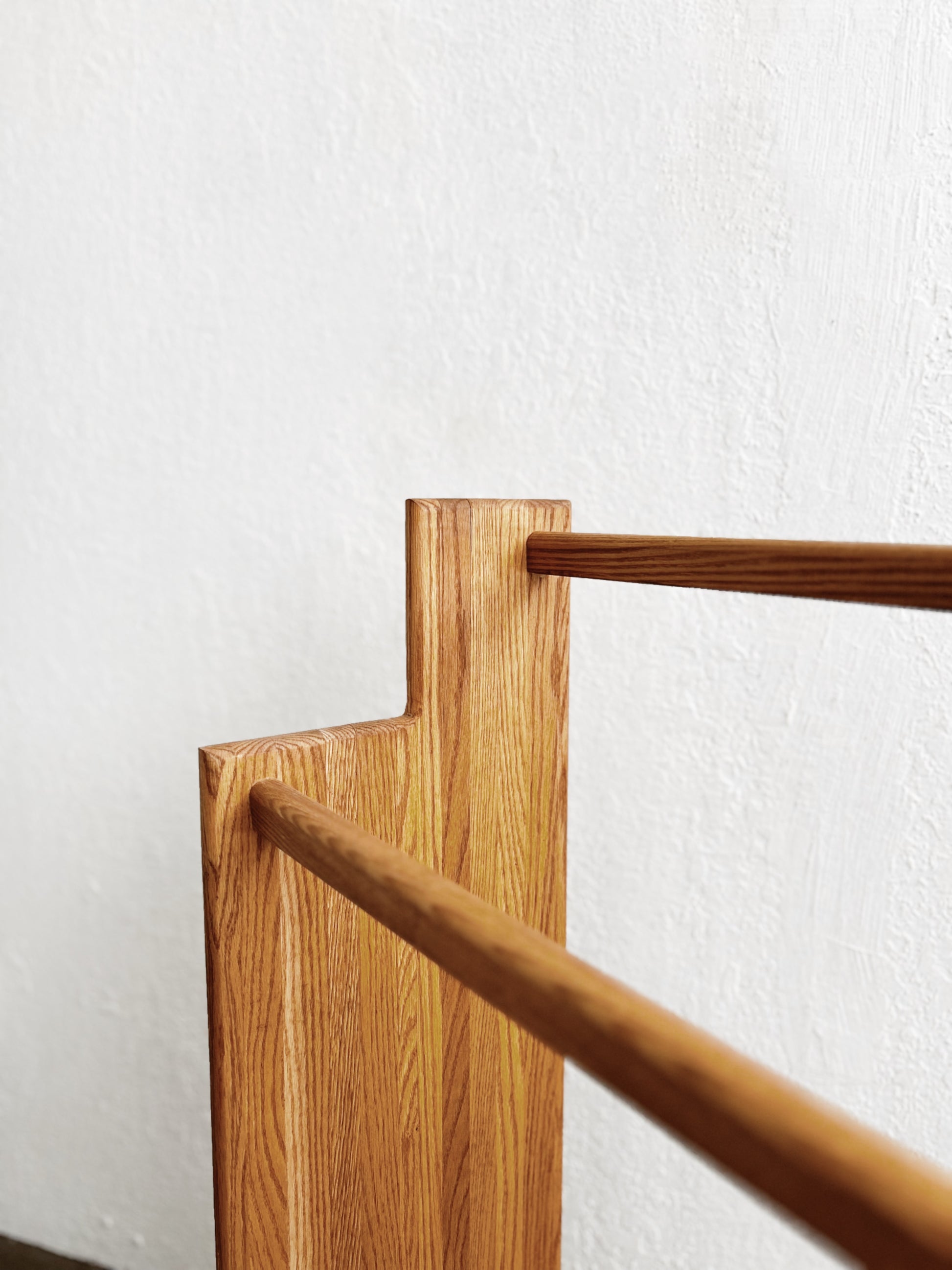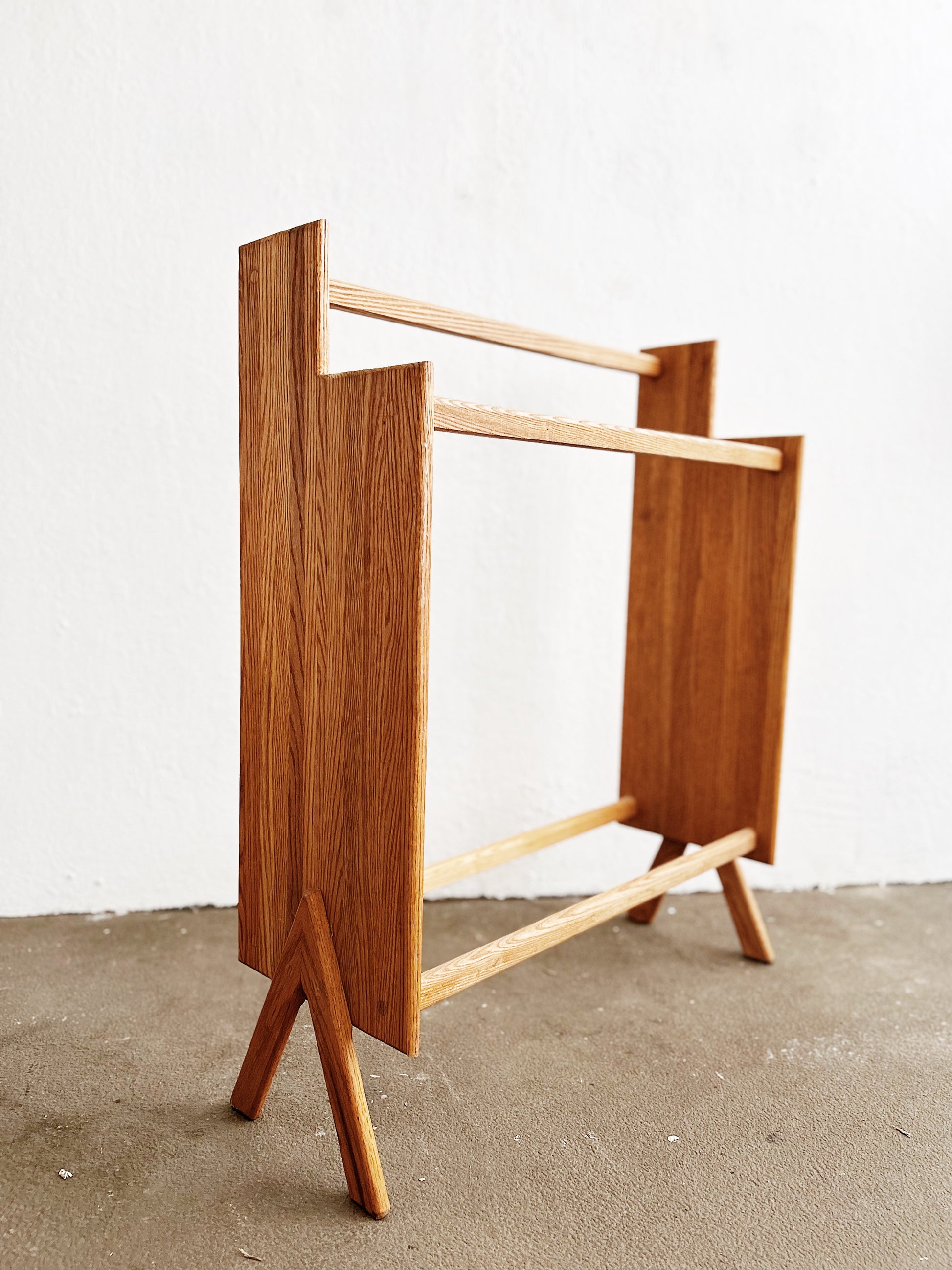 Such a great looking quilt rack. Modern craft design aesthetic, beautifully done. Solid oak.