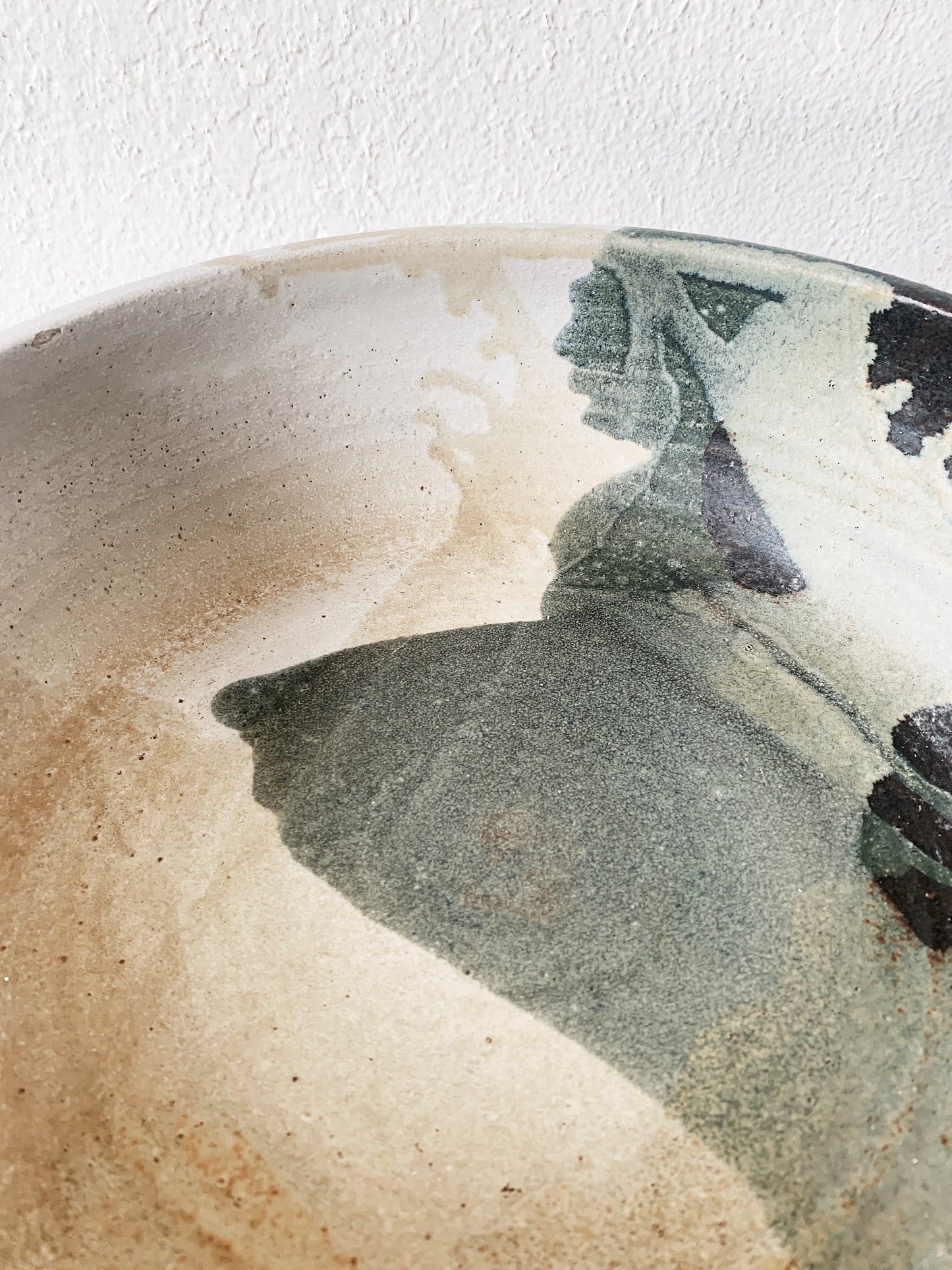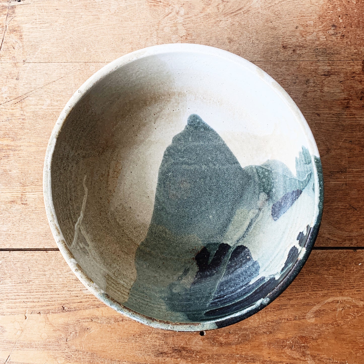 Handmade vintage stoneware bowl with the absolute prettiest glaze.