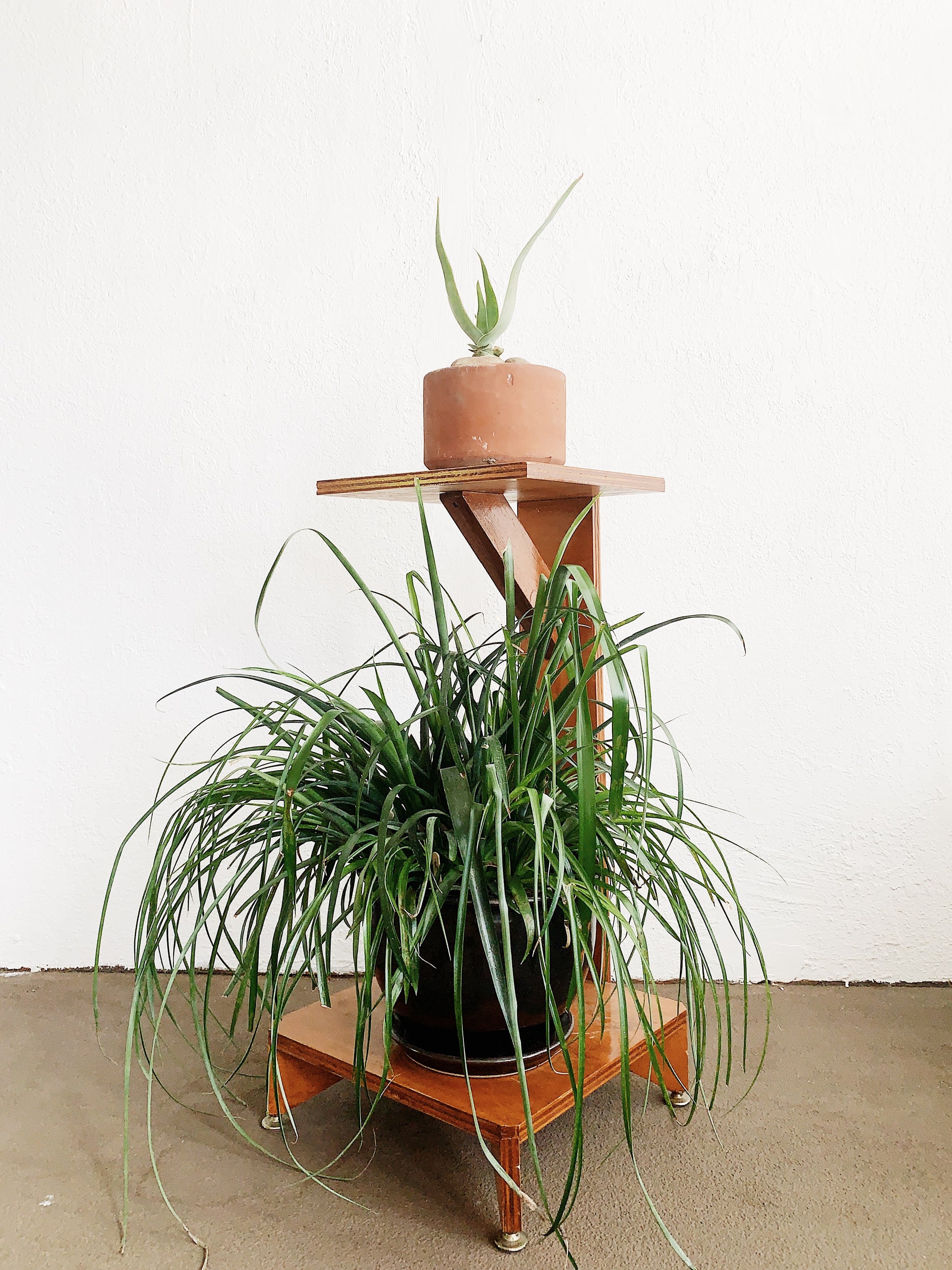 Killer handmade wood double plant stand or shelf/side table. Sturdy, well made.
