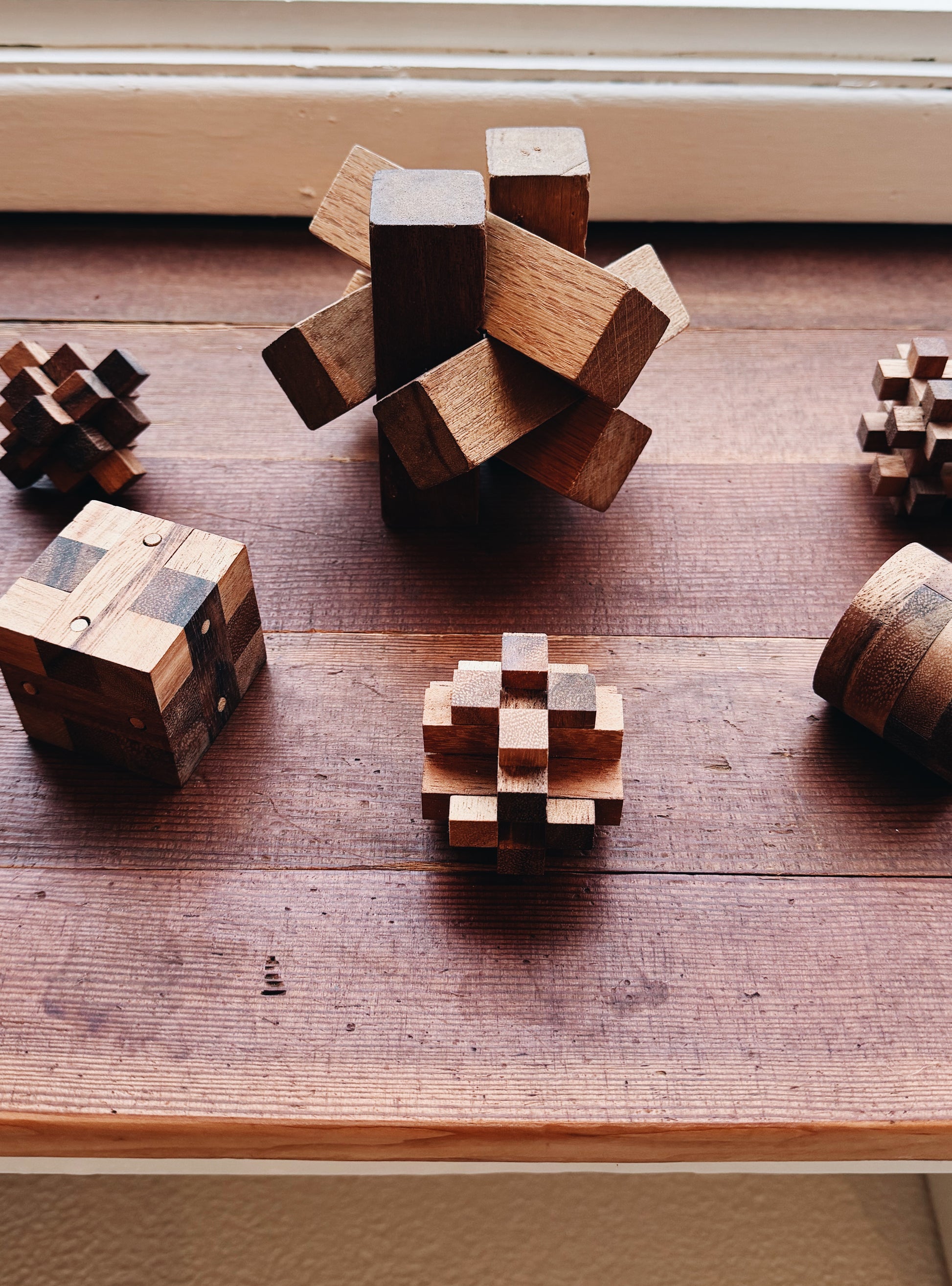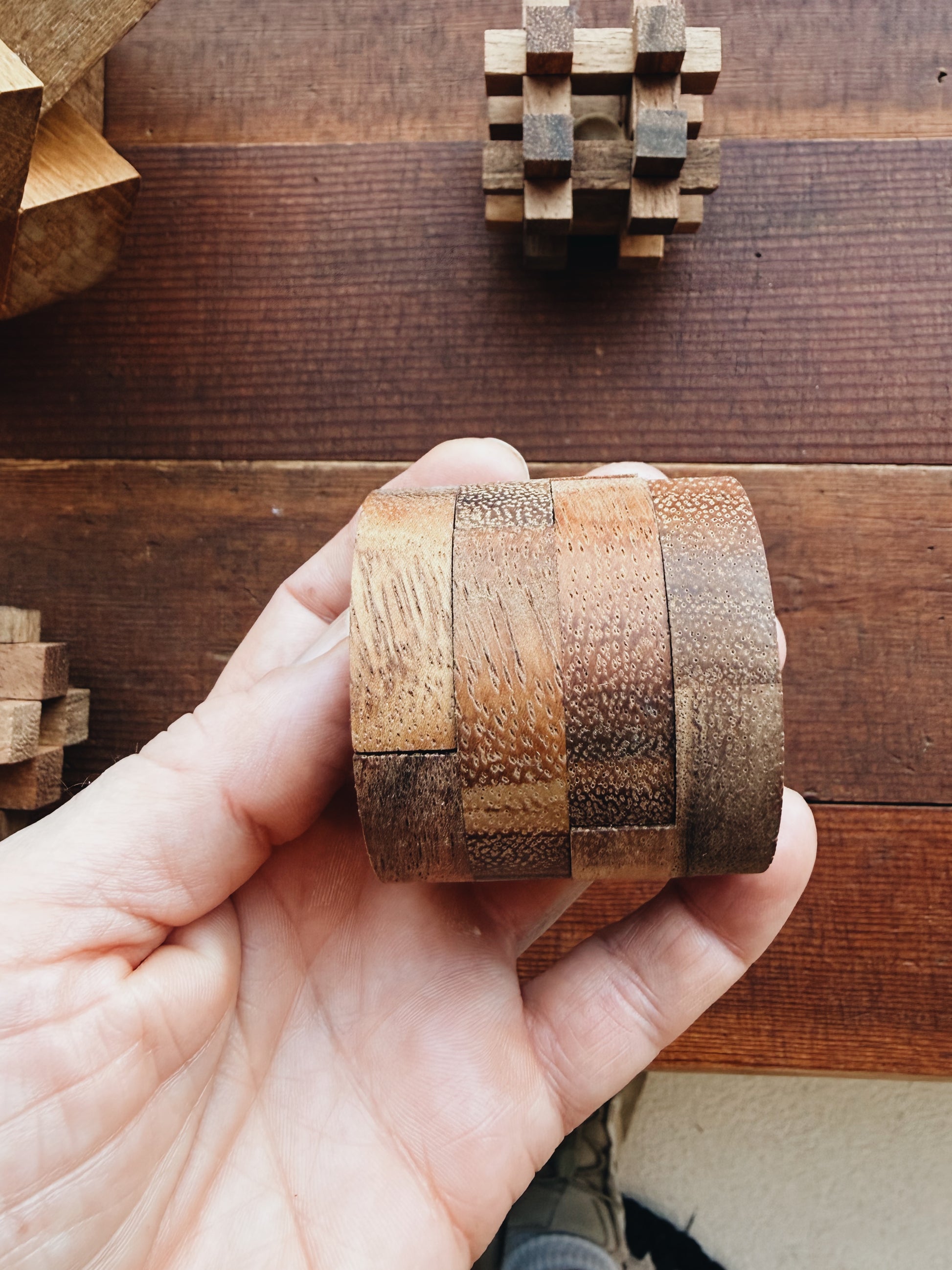 Handmade vintage wooden brainteaser puzzle. Also make nice modern craft sculpture.
