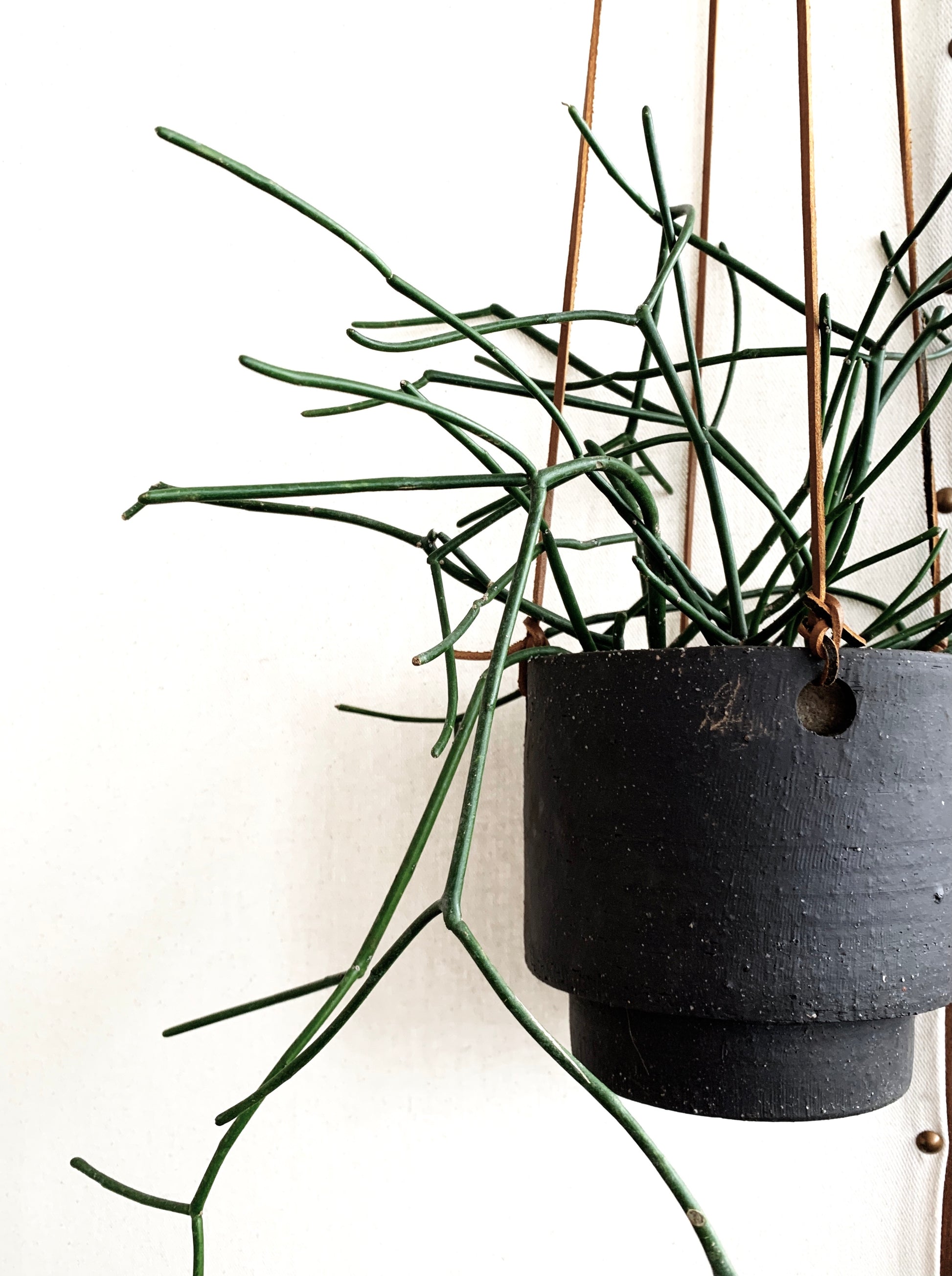 Ceramic pot with leather as discussed
