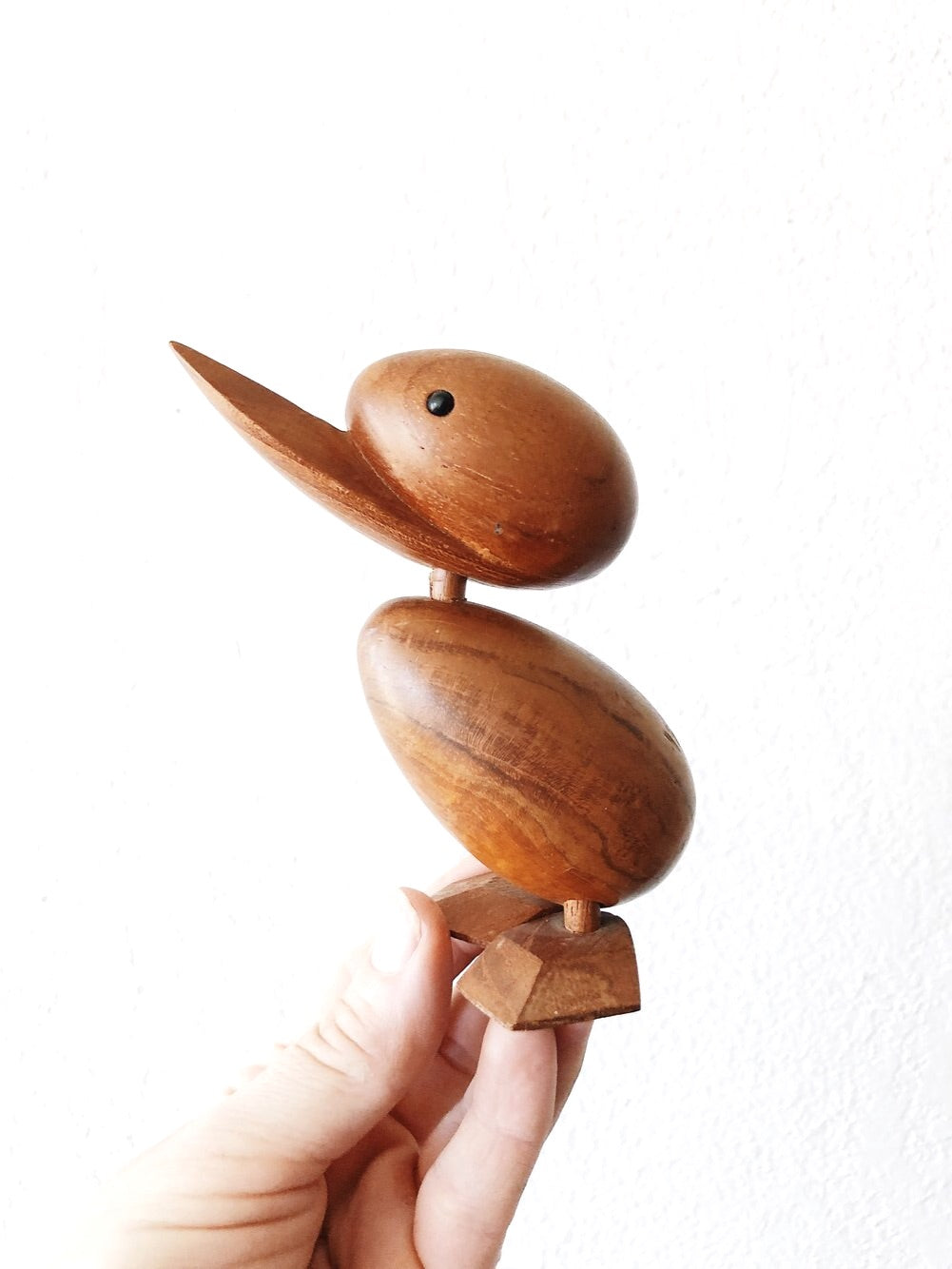Mid Century Finnish design. The Duck was designed by Hans Bølling in 1959. handmade out of teak wood with a clean, smooth finish. Old repair of the neck dowel but looks secure.