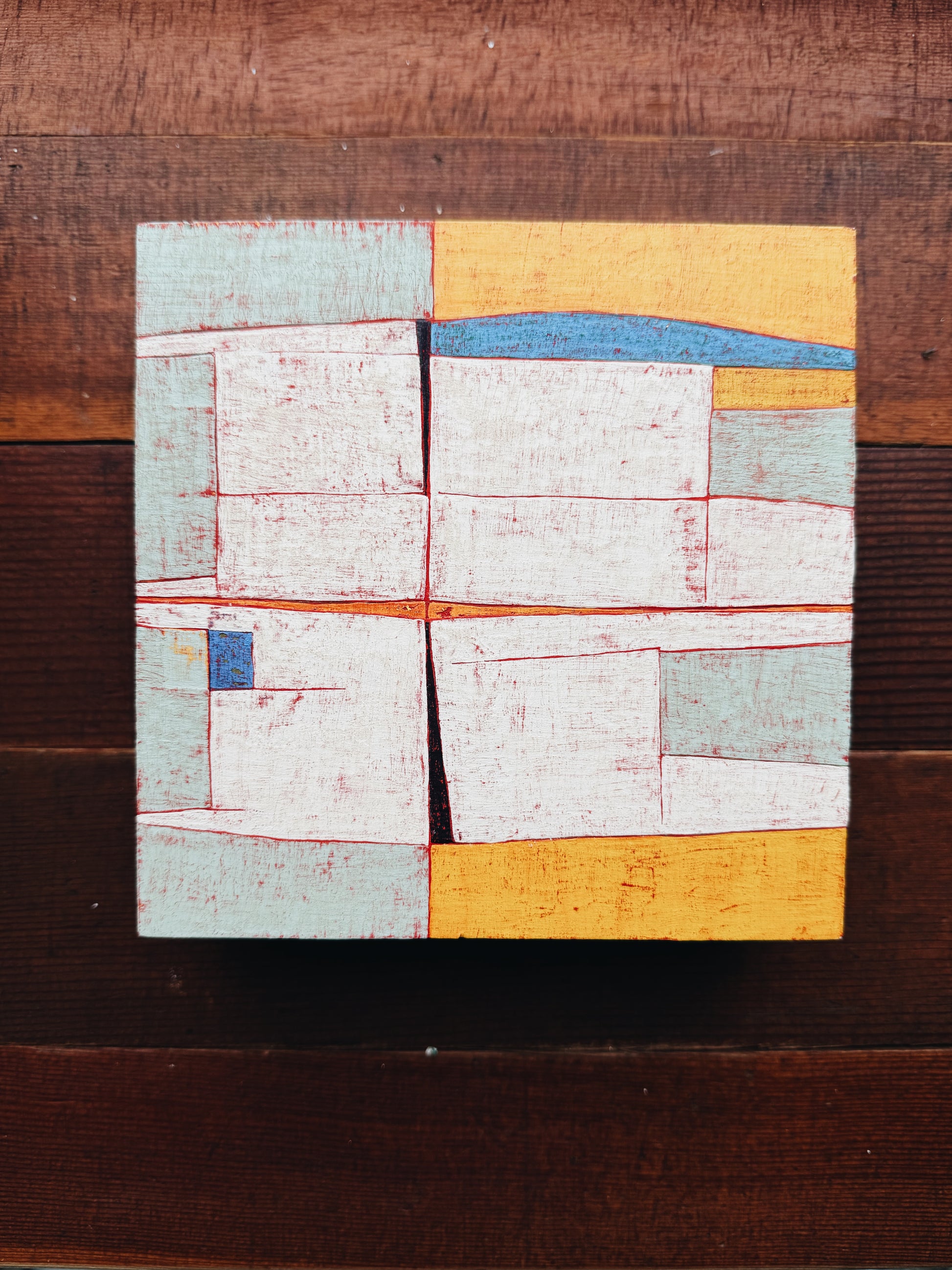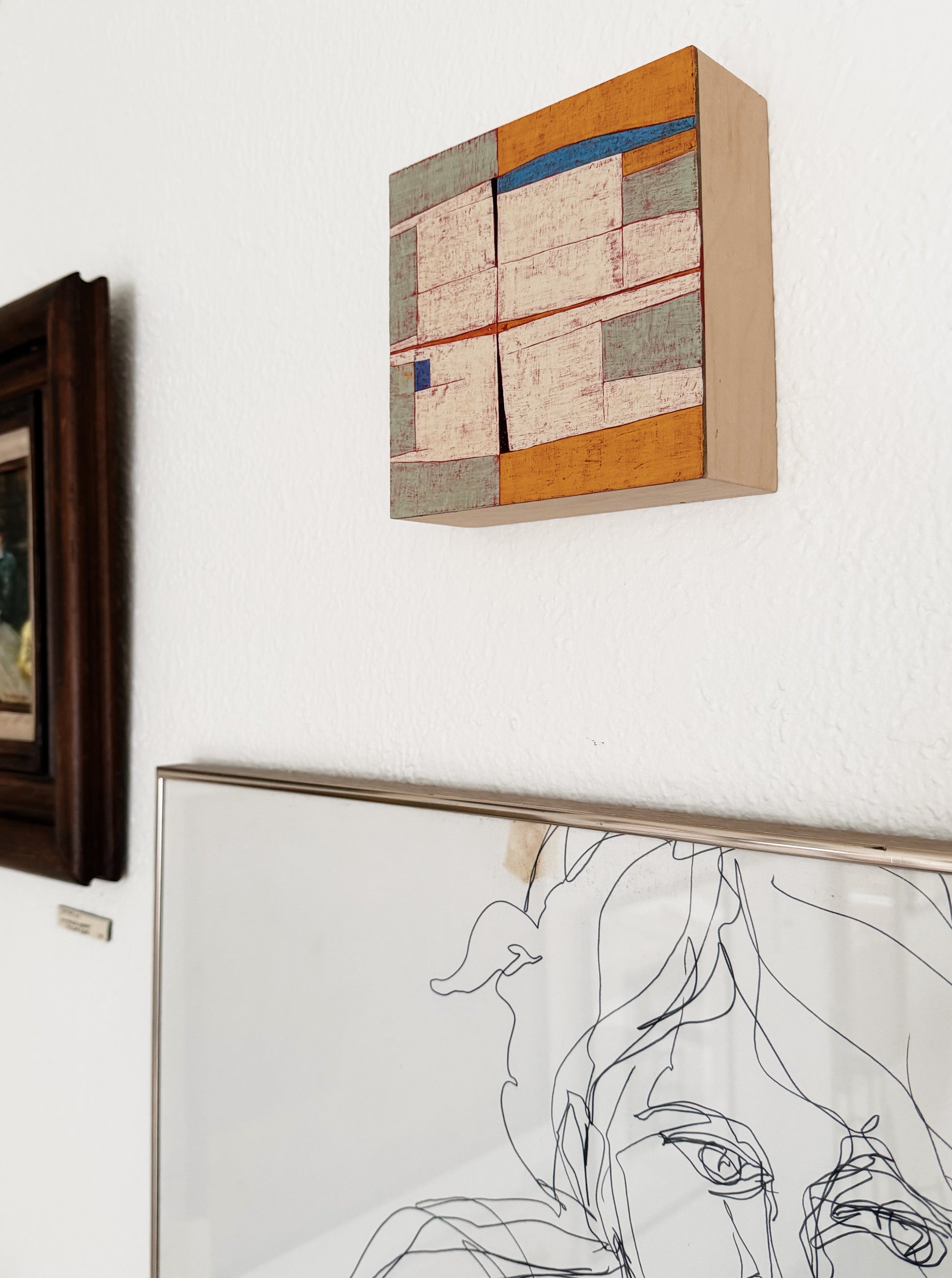 Abstract painting on on board. Boxed frame hard edged. Great colors! And a wonderful smaller piece for an art wall or nook