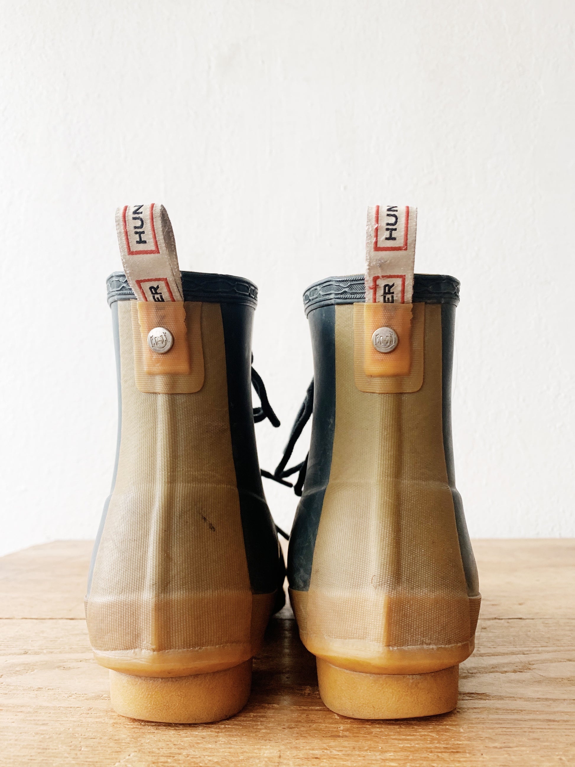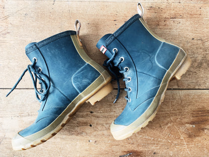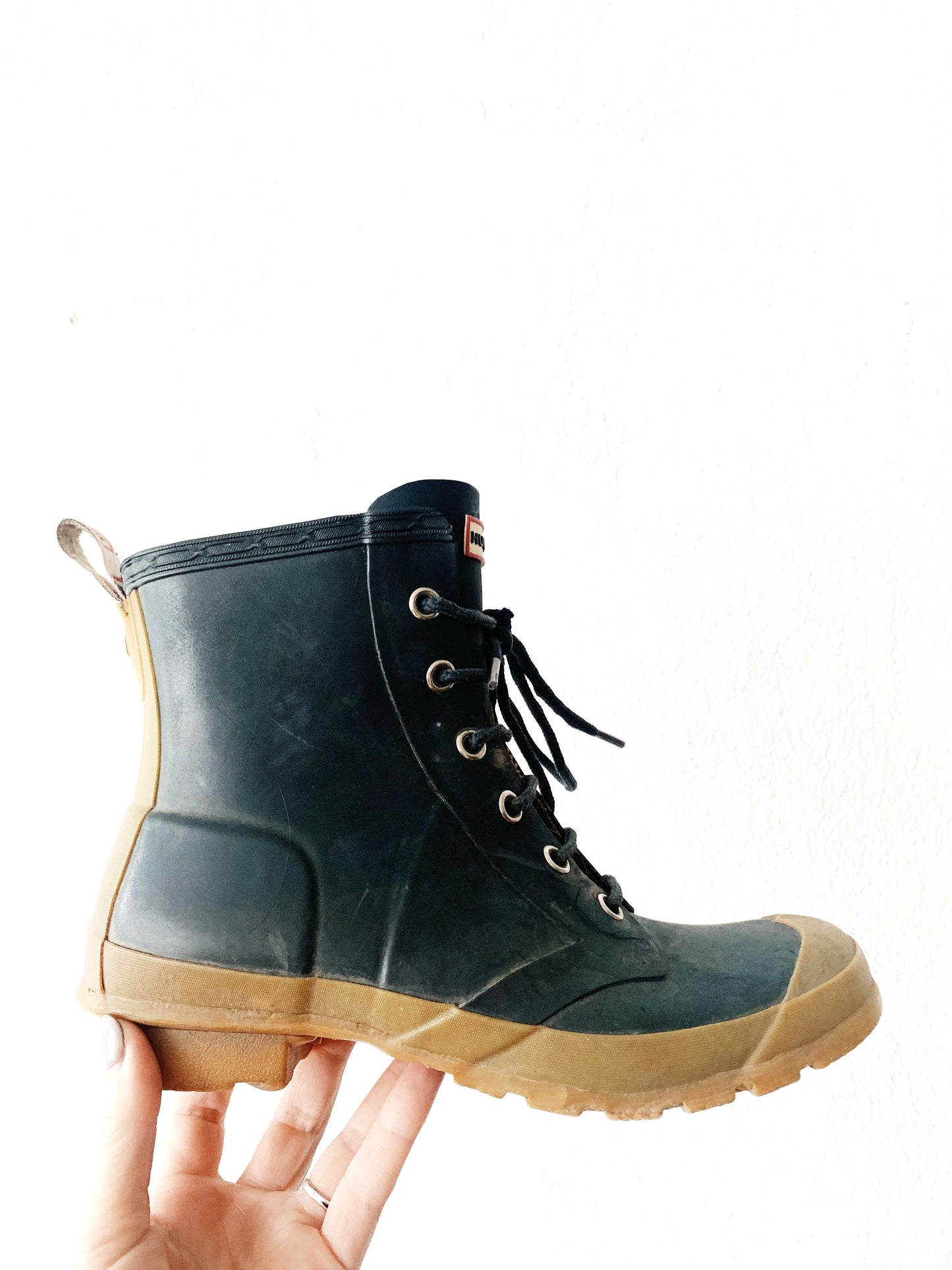 A great pair of Hunter lace up rain boots. Love the non glossy finish. In excellent pre owned condition.