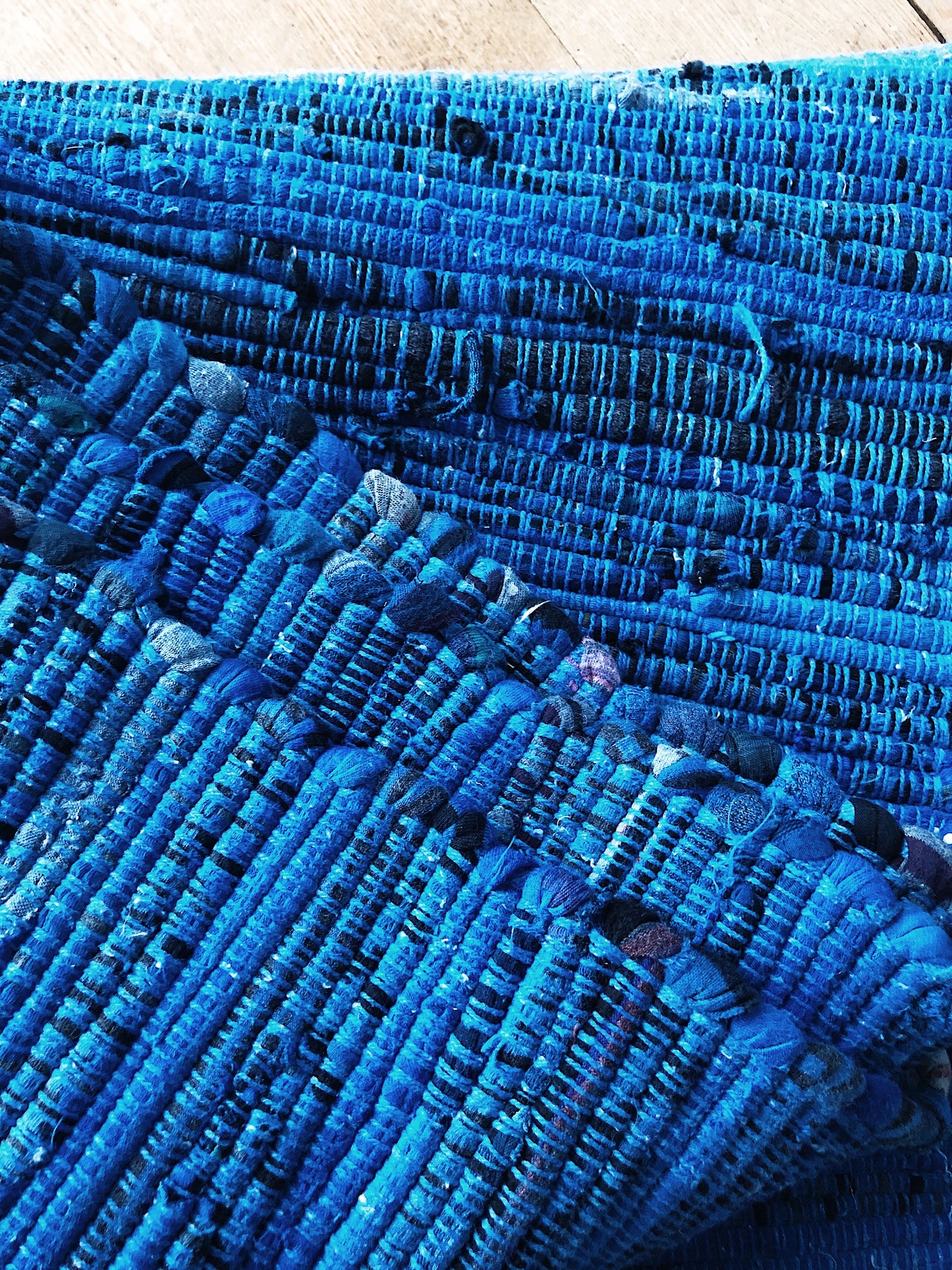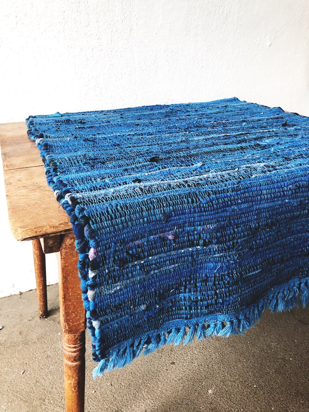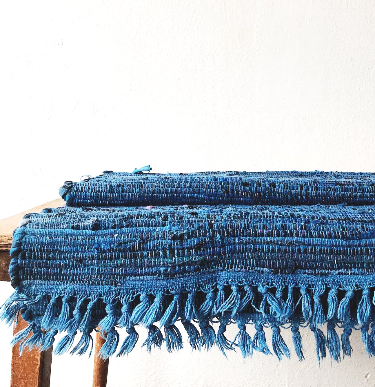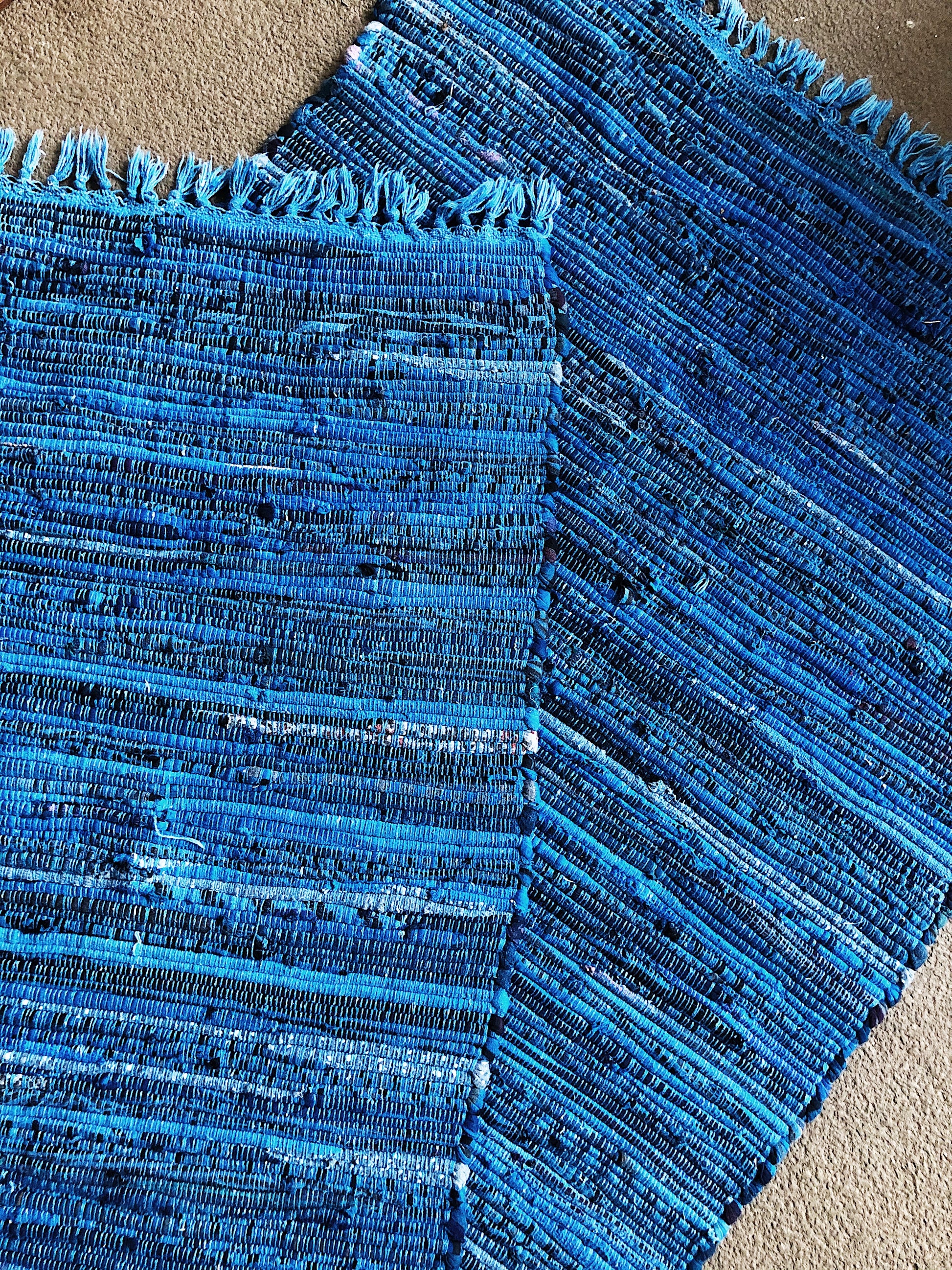 Such a rich saturated indigo blue rag rug. Nice long runner size. Weighty and soft