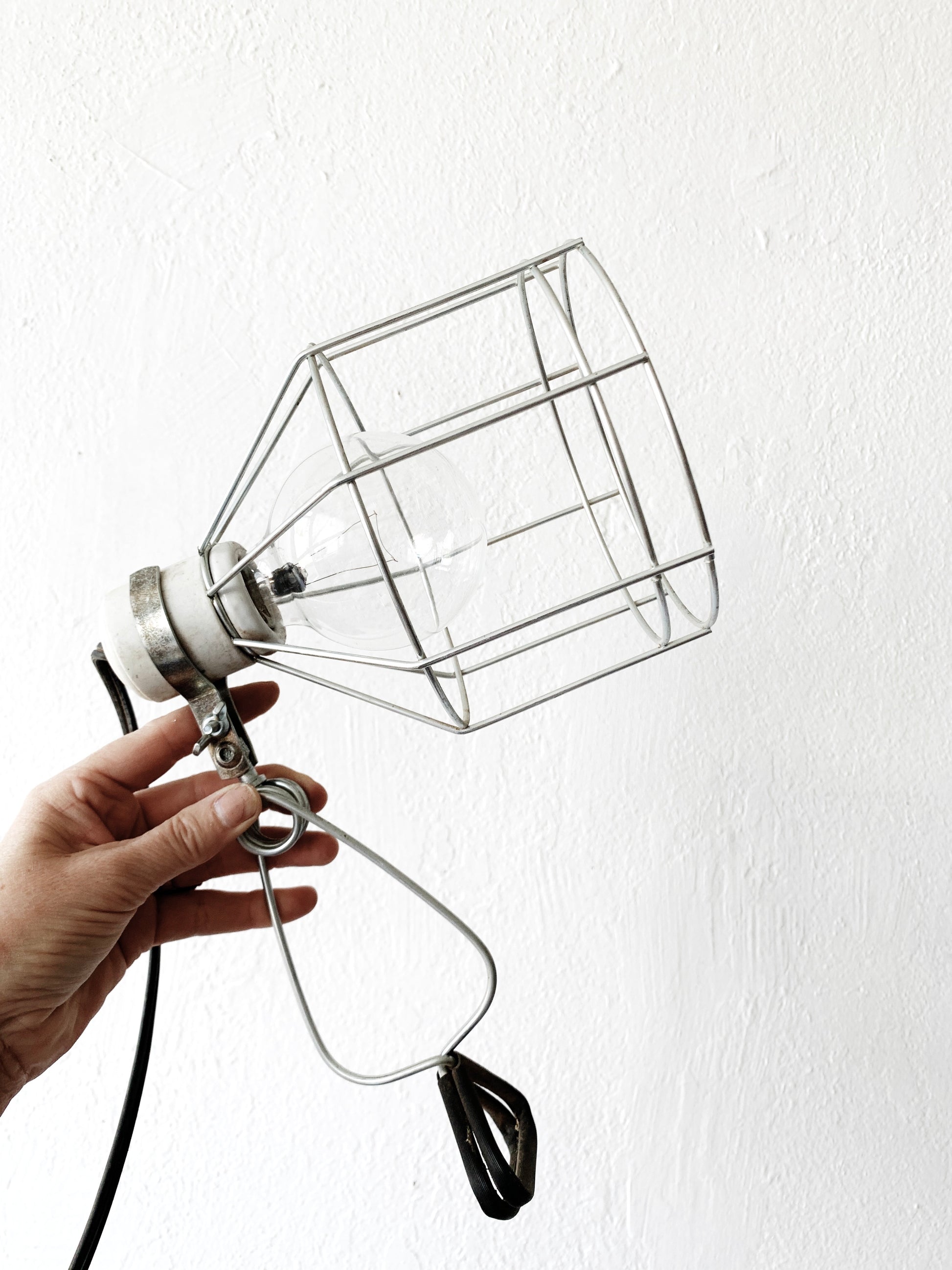 Great looking industrial cage clamp light with switch cord. Works great, takes a standard bulb. Perfect for plants or anywhere you need a spot of light.