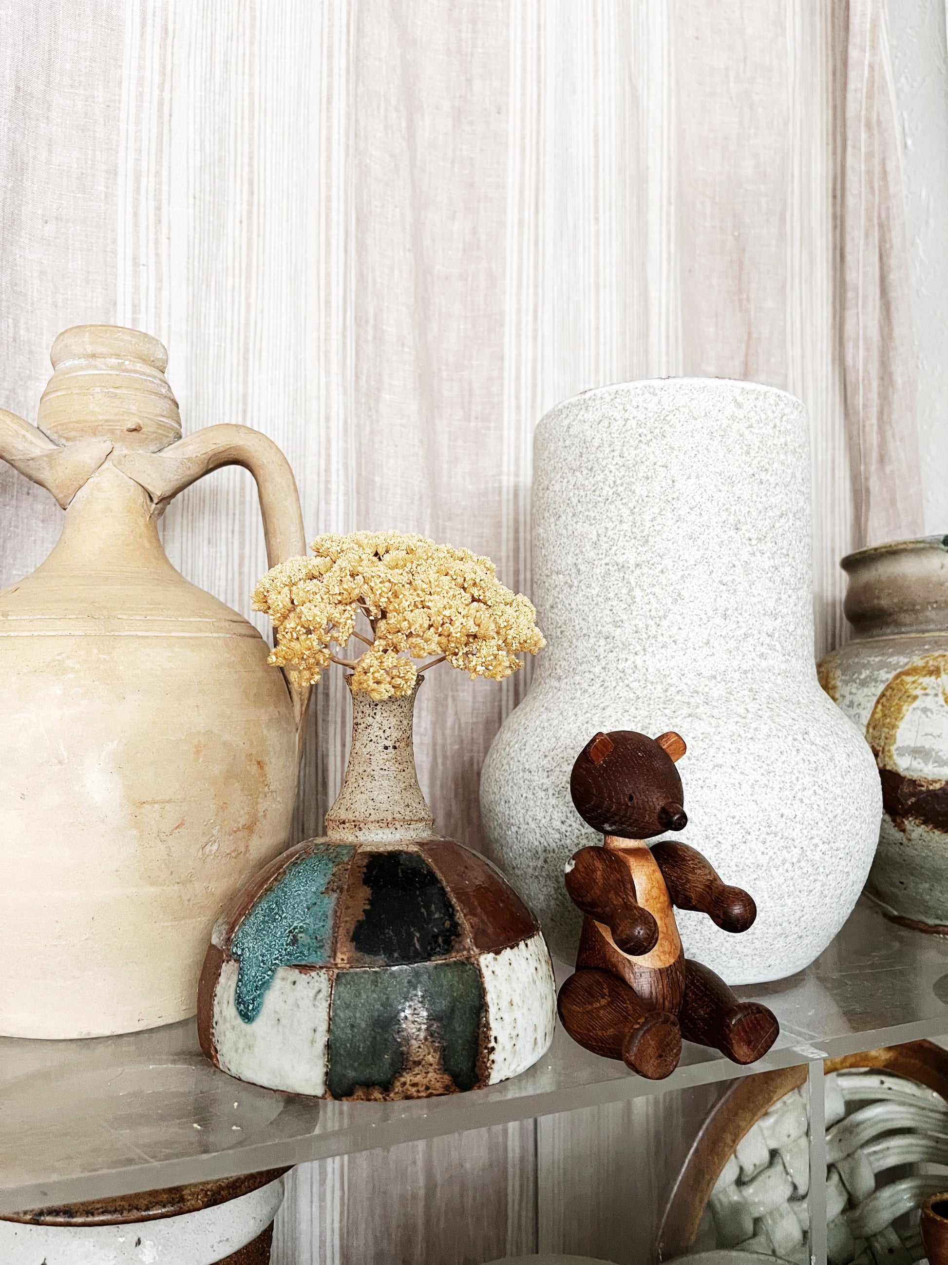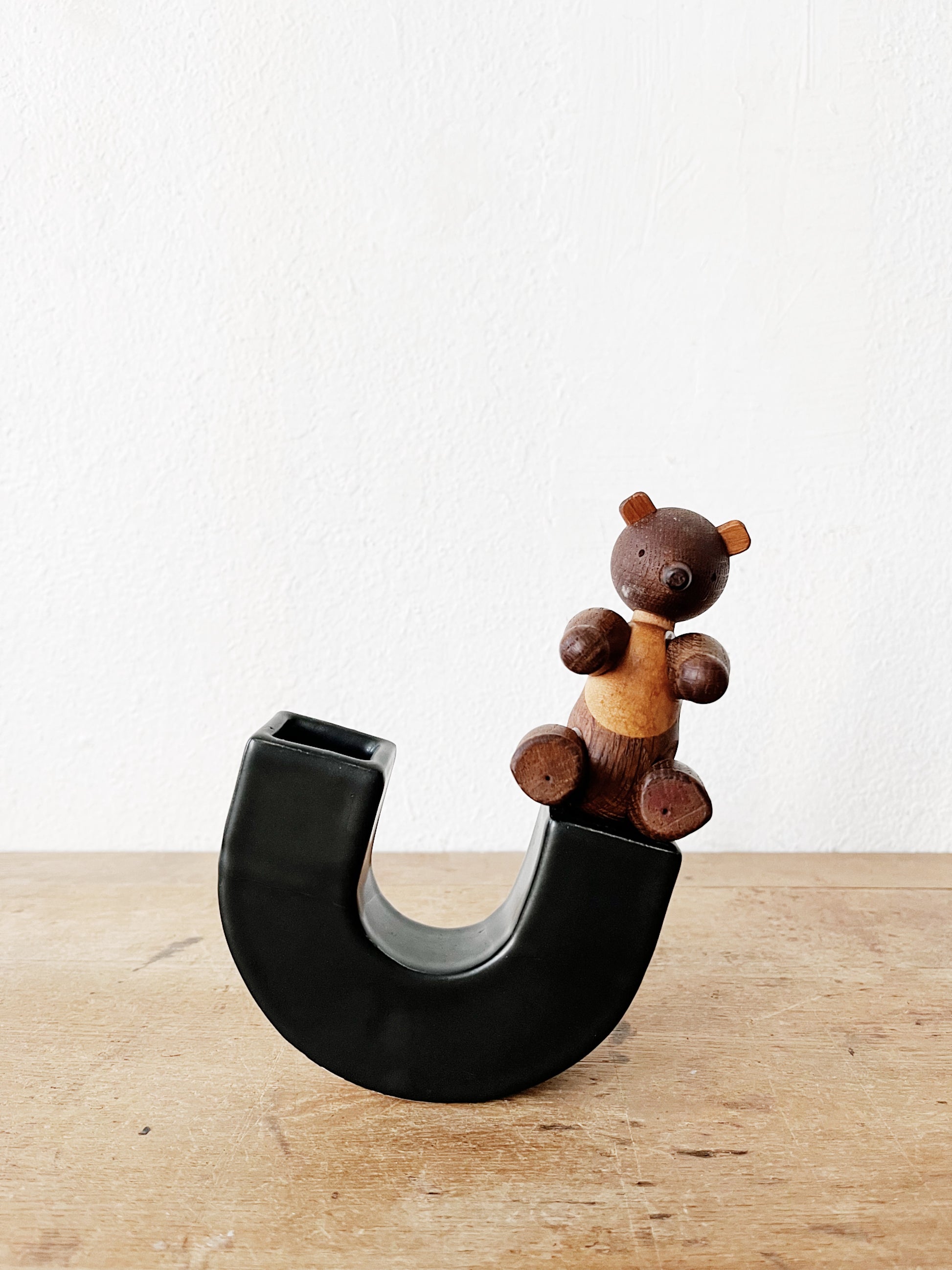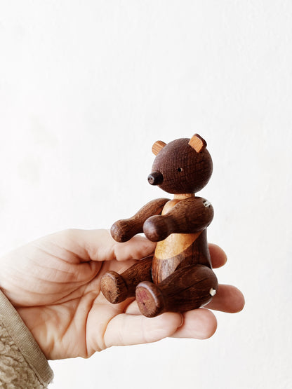 Kay Bojesen (15 August 1886 – 28 August 1958) was a Danish silversmith and designer. He is best known for creating wooden animals. This is his articulated wooden teddy bear from mid century Denmark. Normally all the joints would move, this little guy has two opposing limbs (arm leg) that are stationary. The head moves and well as the other two limbs. Price reflects this
