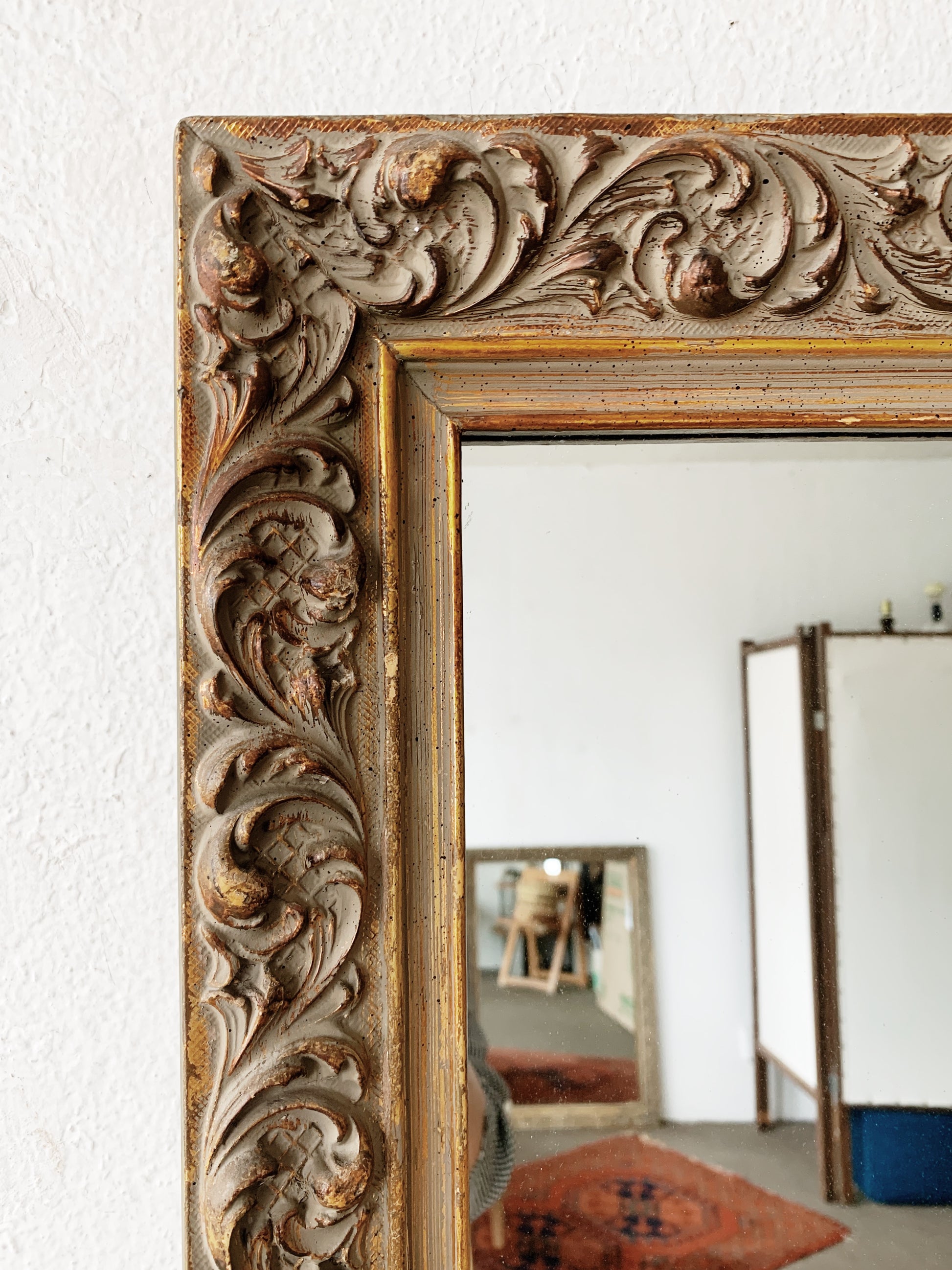 Large Ornate Carved Wood Gilt Mirror