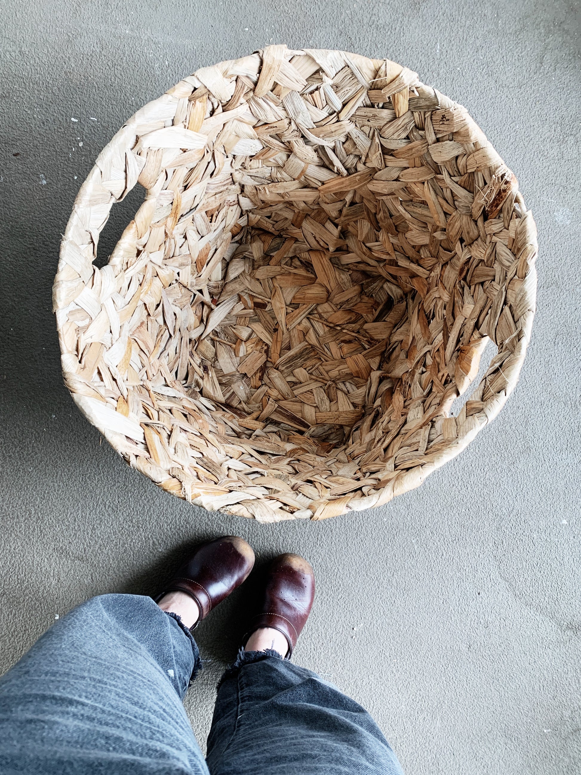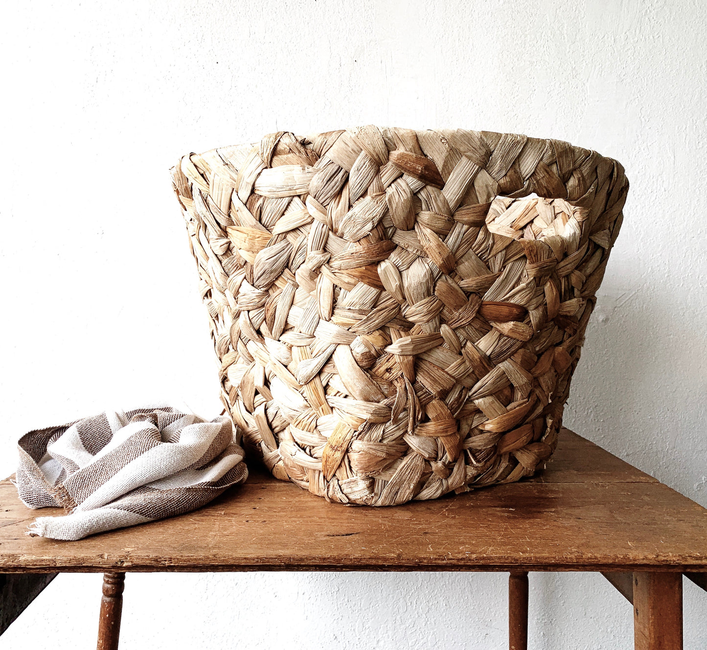 Fantastic large loosely woven basket on metal frame. Integrated handles. Nice looking and useful! Great for laundry, toys, blankets, and any other number of household goods.