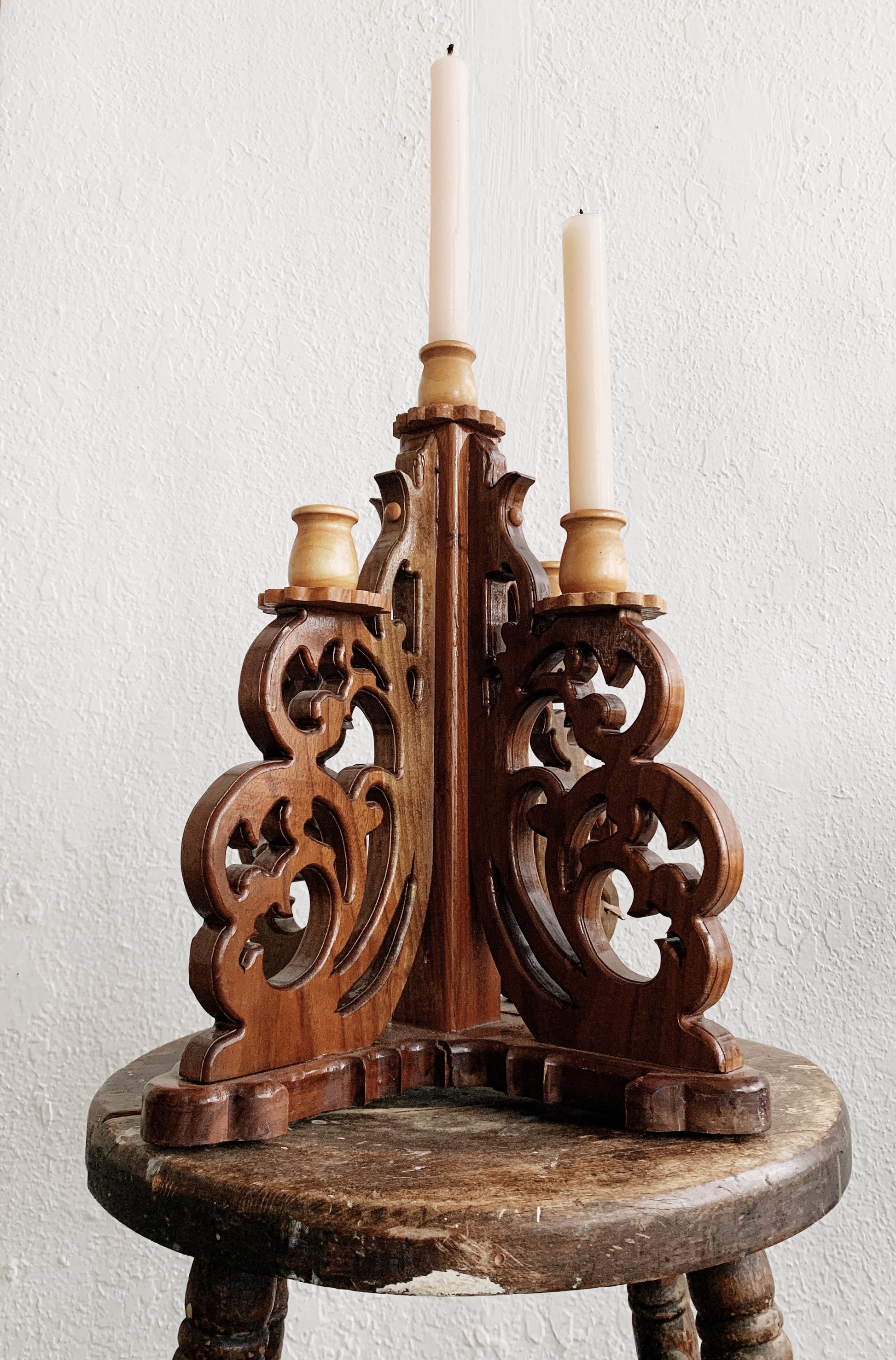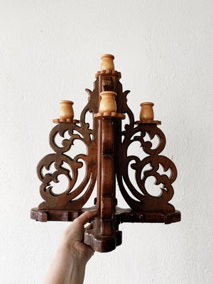 Large Carved Wood Candelabra