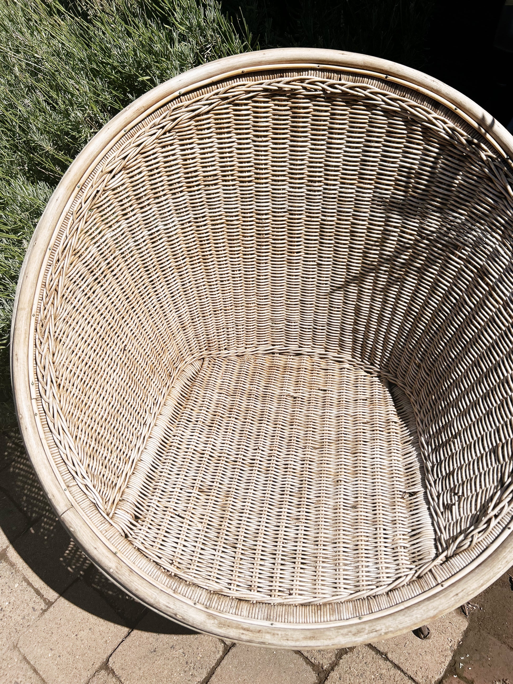 Large mid century basketweave hoop chair. Iron frame and legs. Basket is in remarkably good condition considering the age. Base has some surface rust but nothing that faults it.
