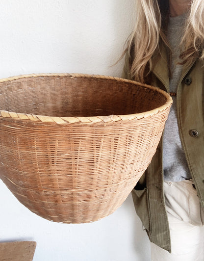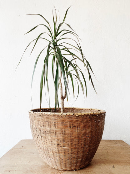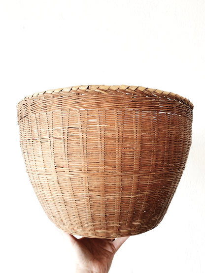 Excellent large woven vintage basket with wider opening of 15” x 10” tall