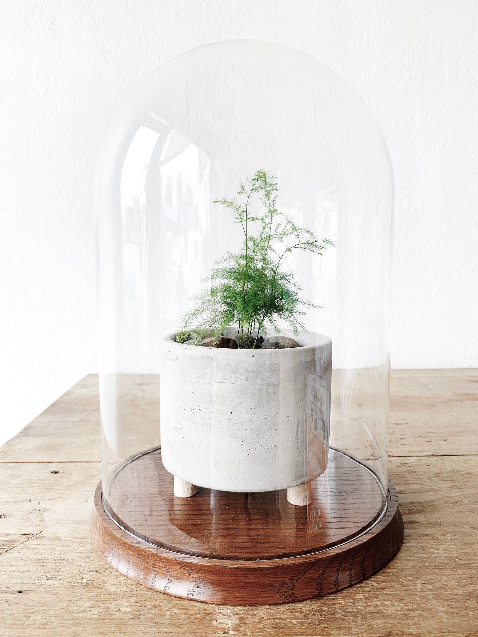 Large Vintage Cloche Terrarium with Potted Fern